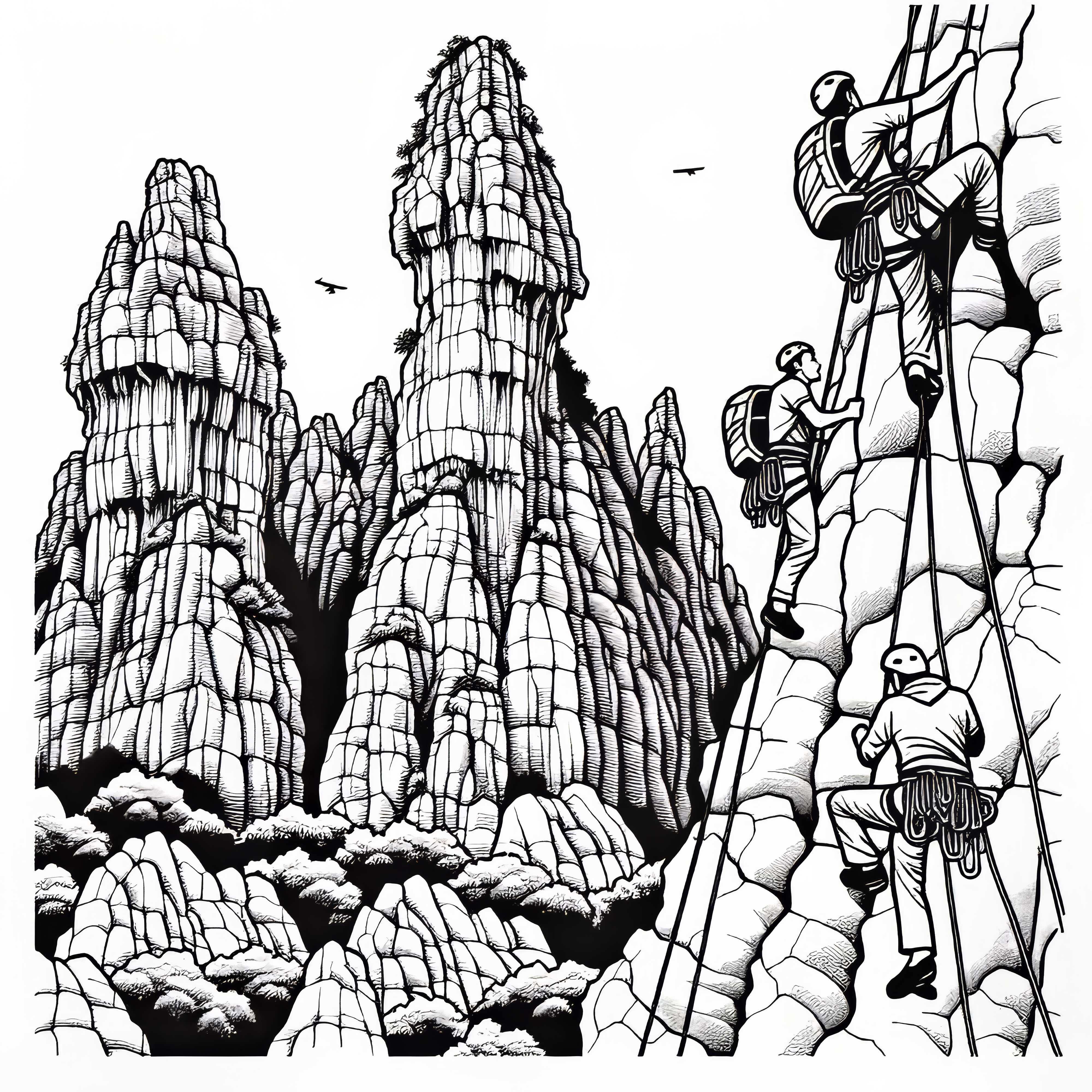 Felsen mit ungewöhnlichen Formen als Ausmalbild in einer Karstlandschaft kostenlos