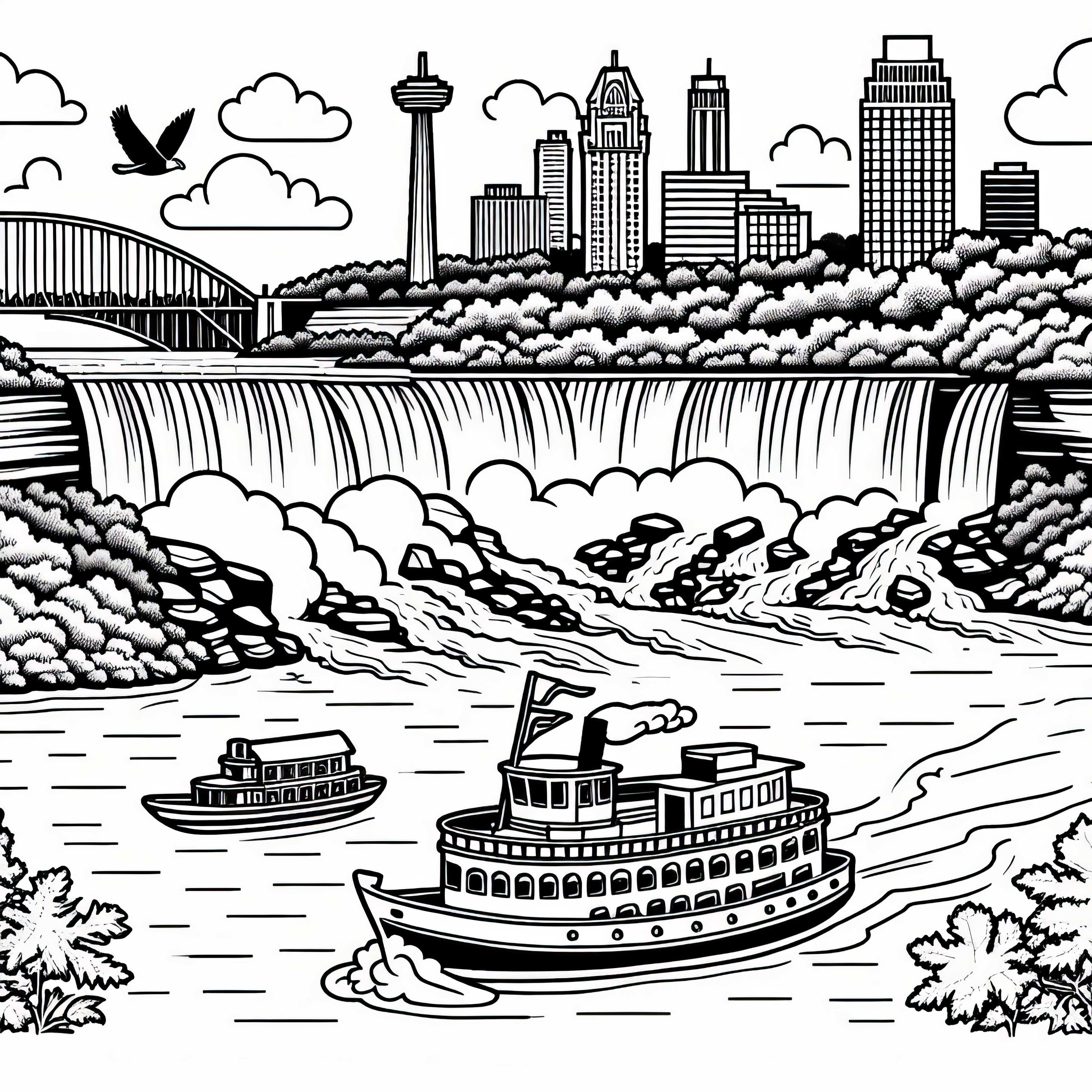 Freiheitsstatue in den USA mit Fähre im Vordergrund – Ausmalbild für Nordamerika