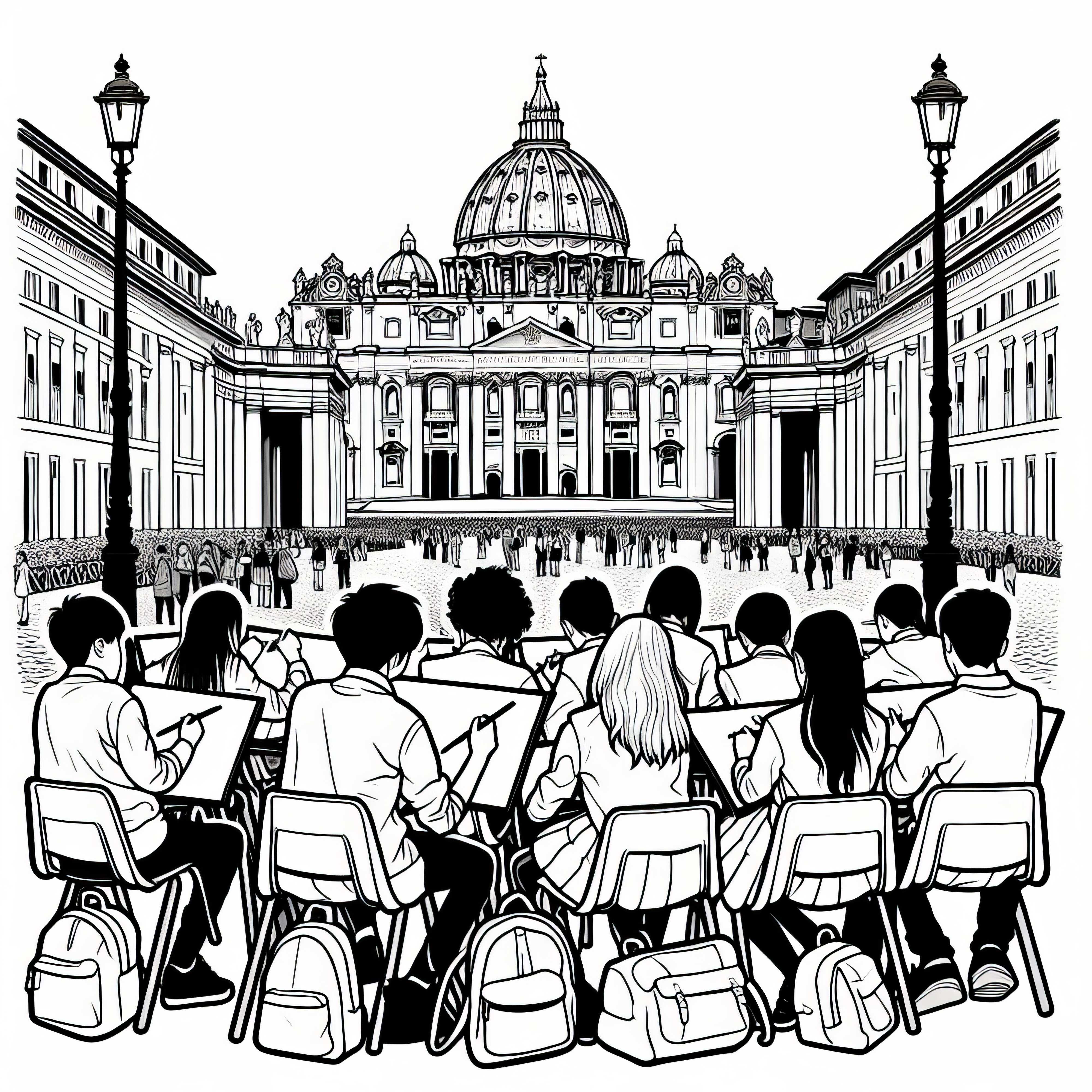 Kinder stehen auf dem Platz vor der Christusstatue in Rio de Janeiro – Ausmalbild kostenlos