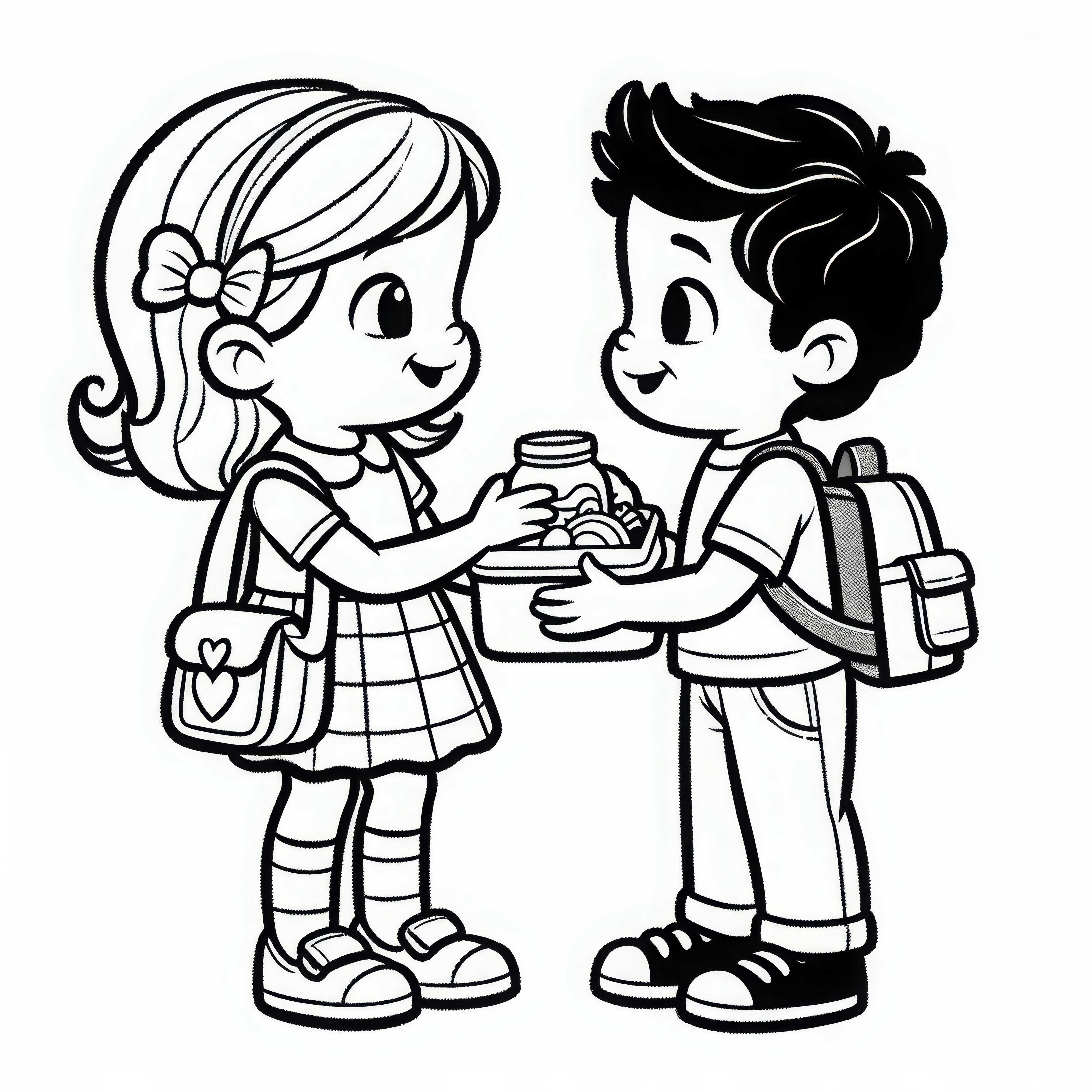 Zwei Kinder laufen über einen Zebrastreifen – Malvorlage kostenlos