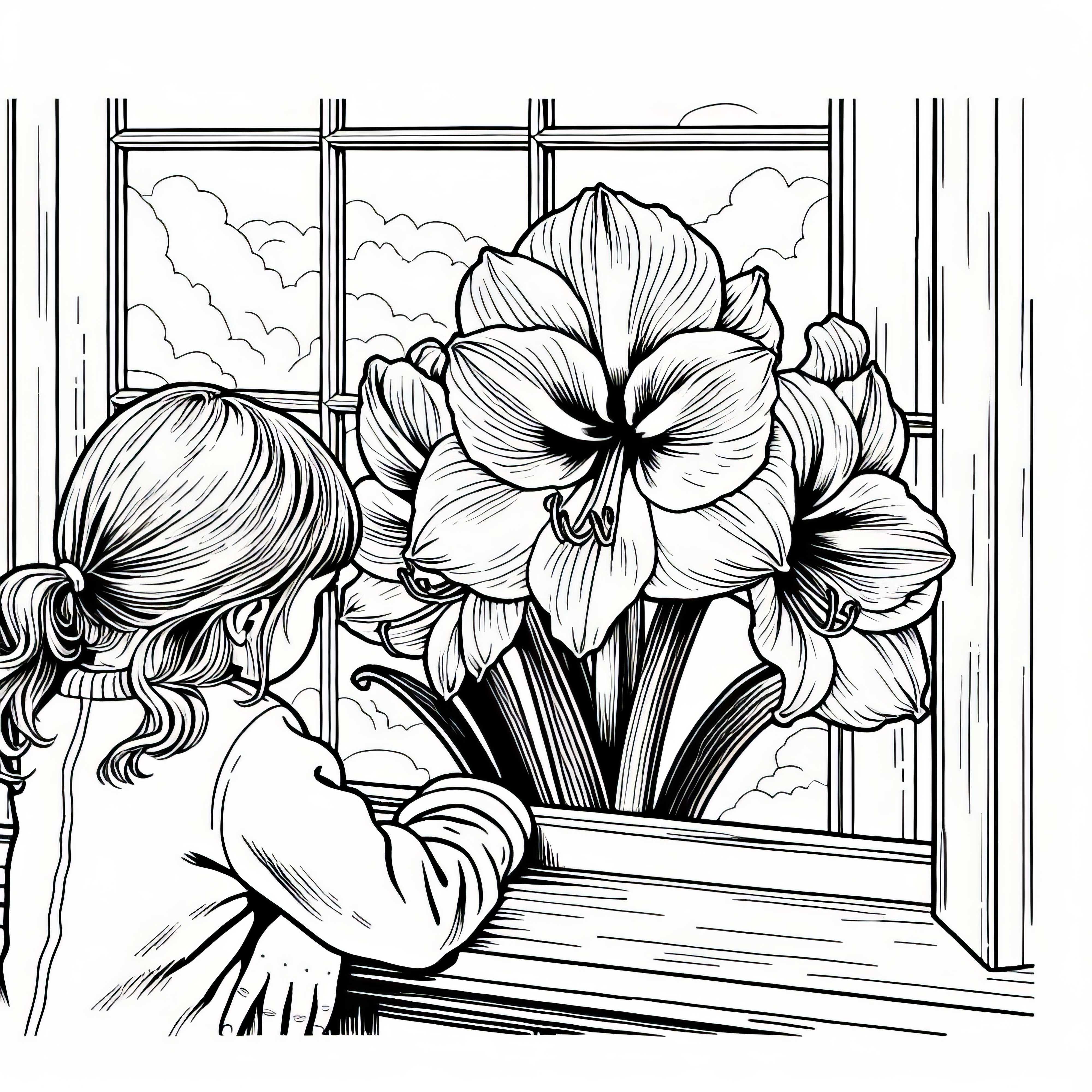 Auf diesem Ausmalbild ist ein Kind zu sehen, das eine wunderschöne Amaryllis-Blume betrachtet. Das Bild eignet sich hervorragend für kreative Auszeiten und fördert die Konzentration beim Ausmalen. Du kannst das Ausmalbild kostenlos herunterladen und es sowohl ausdrucken als auch online ausmalen. Lade dir jetzt das Ausmalbild herunter und bring etwas Farbe in deinen Tag!