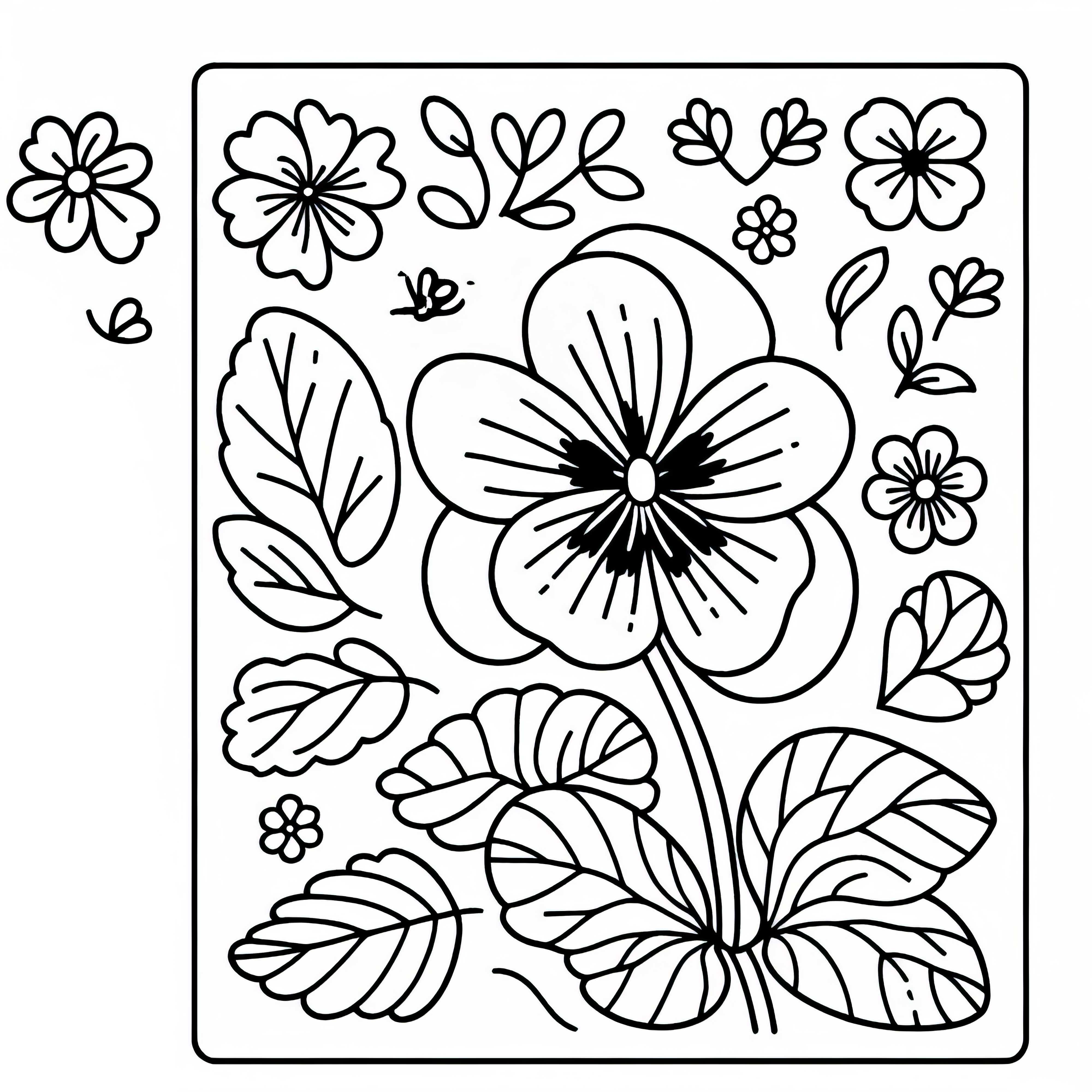 Mehrere Blumen – Veilchen Ausmalbild Gratis Herunterladen