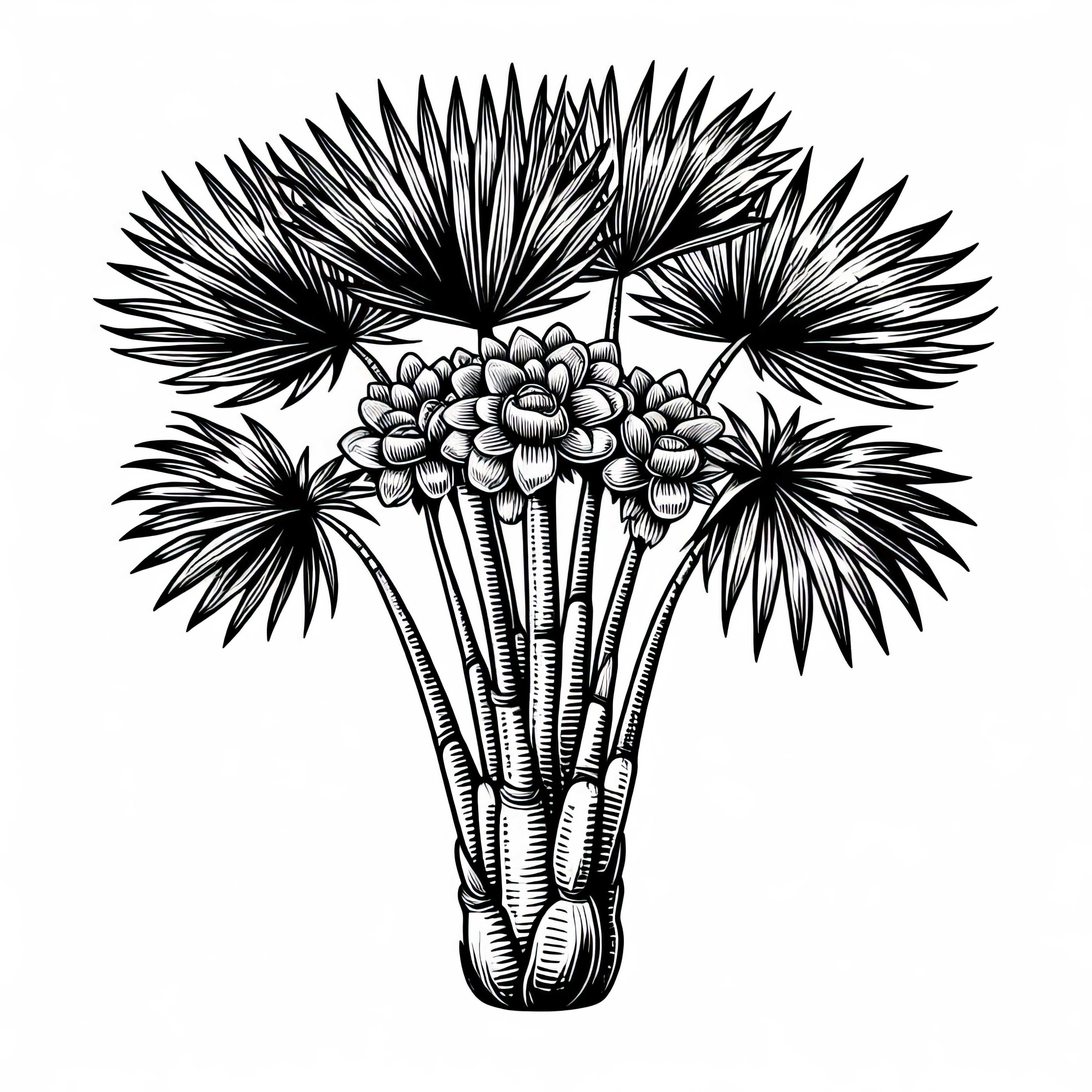 Ausmalbild einer Doumpalme (Hyphaene thebaica) – Kostenloses Motiv