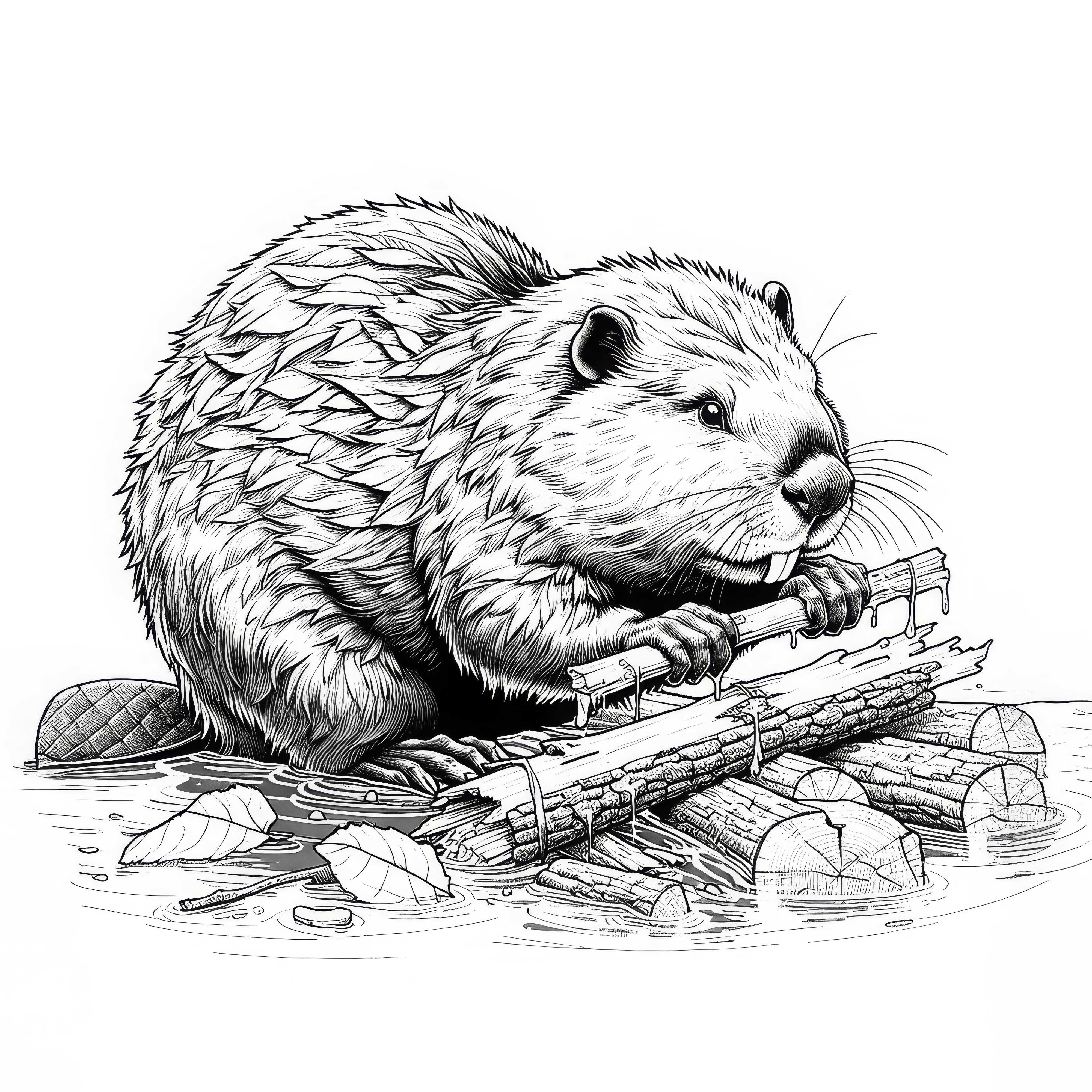 Zwei Biber bauen einen Staudamm: Einfache Malvorlage (Kostenlos)