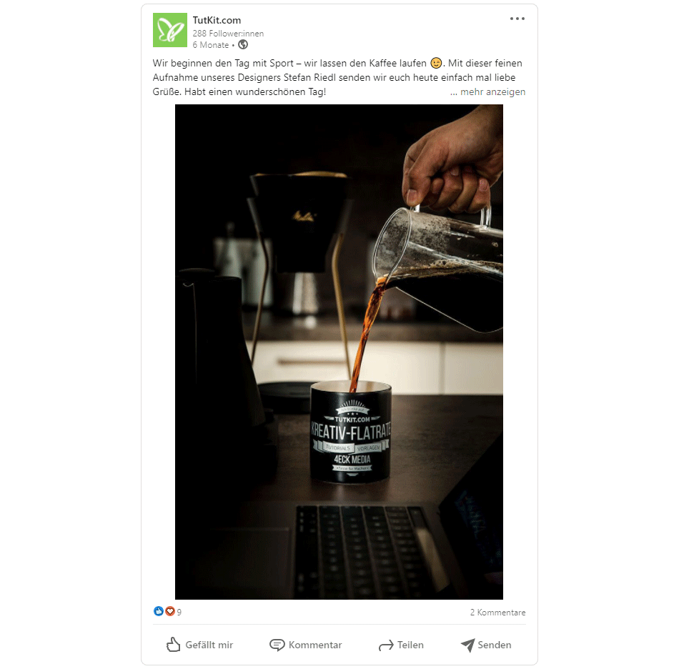 Ob Texte oder Videos, Bilder oder GIFs – entscheidend ist ein hochwertiger Inhalt. Ist er top, wird er mehr kommentiert, geliked und geteilt. Helle Bilder in fröhlichen Farben erzeugen mehr Aufmerksamkeit. Ebenso Texte, die ein positives Feeling verbreiten. Spendiere deinem Unternehmensauftritt einen Schuss guter Laune. Das mögen deine Follower. Sei unterhaltsam, aber nicht zu kumpelhaft.
