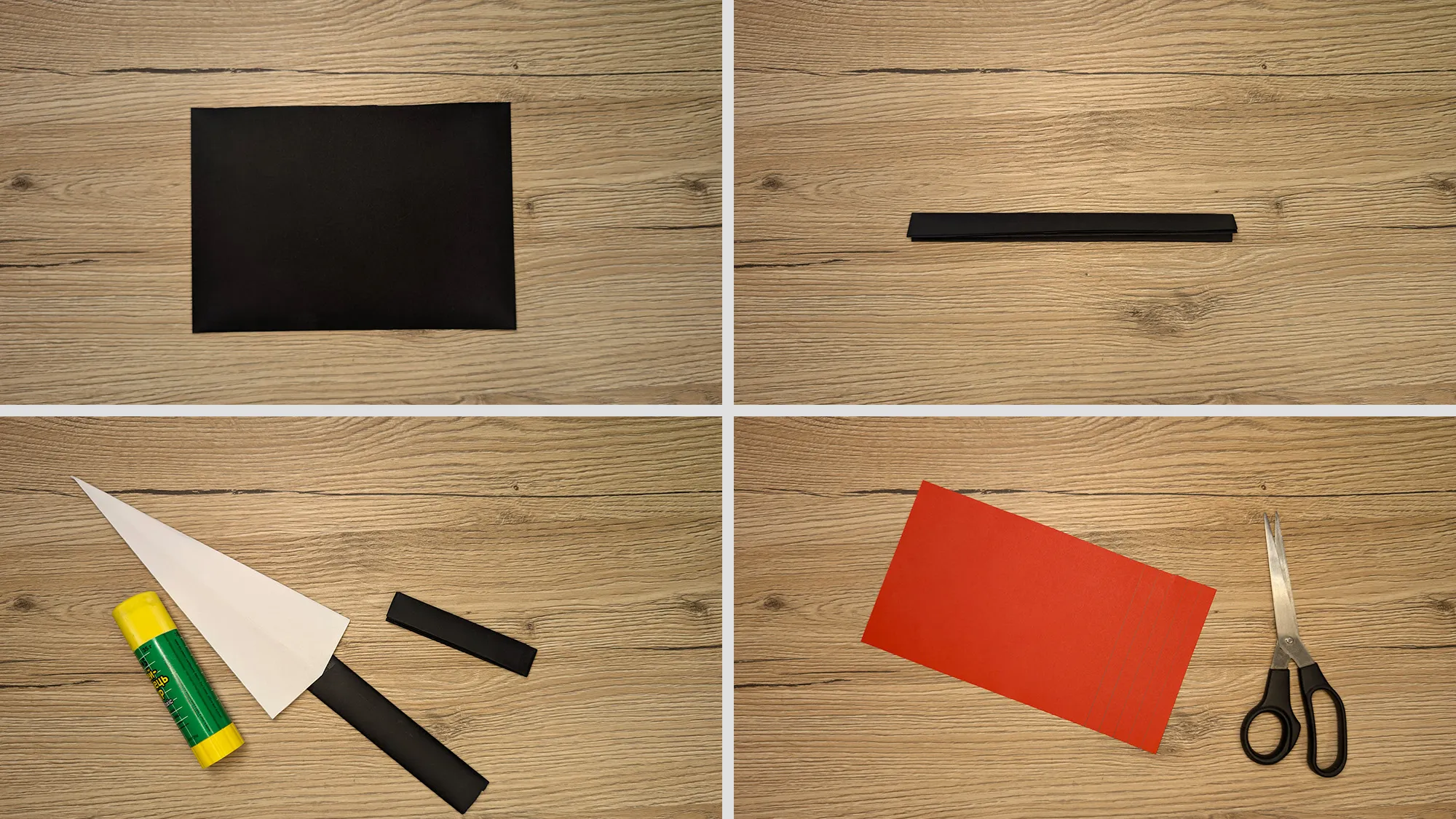 - Farbiges Papier (weiß, schwarz, rot)