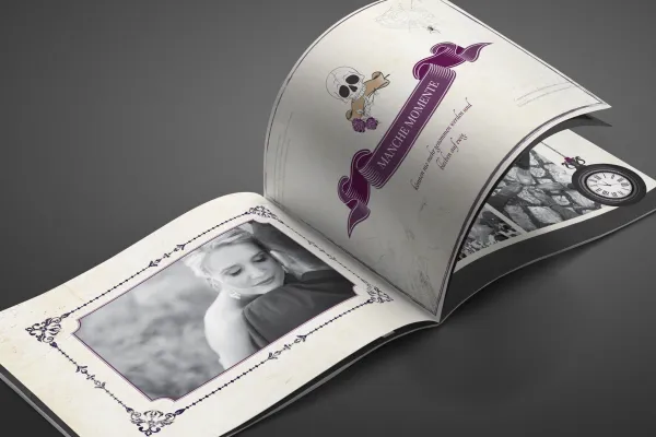Diese Vorlagen bringen dir den Gothic- und Grufti-Style für eine Hochzeit in Schwarz. Ob Hochzeitseinladung, Hochzeitszeitung, Fotoalbum, Dankes oder Tischkarte – Lade dir die Hochzeits-Vorlagen für deine Trauung herunter und passe sie schnell und einfach deinen dunklen Wünschen und Inhalten entsprechend an.