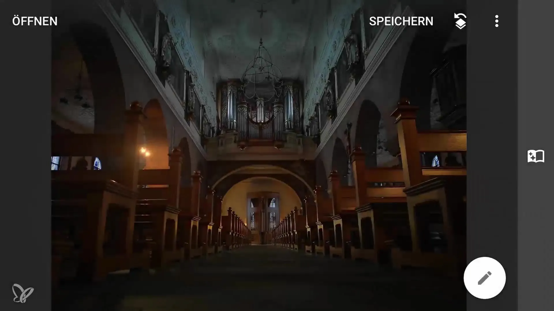 Zunächst öffnest du die Snapseed-App auf deinem Smartphone. Ich habe bereits ein Bild von Marco, das die Kirche zeigt, in die App geladen. Lass uns direkt mit der Bearbeitung beginnen.