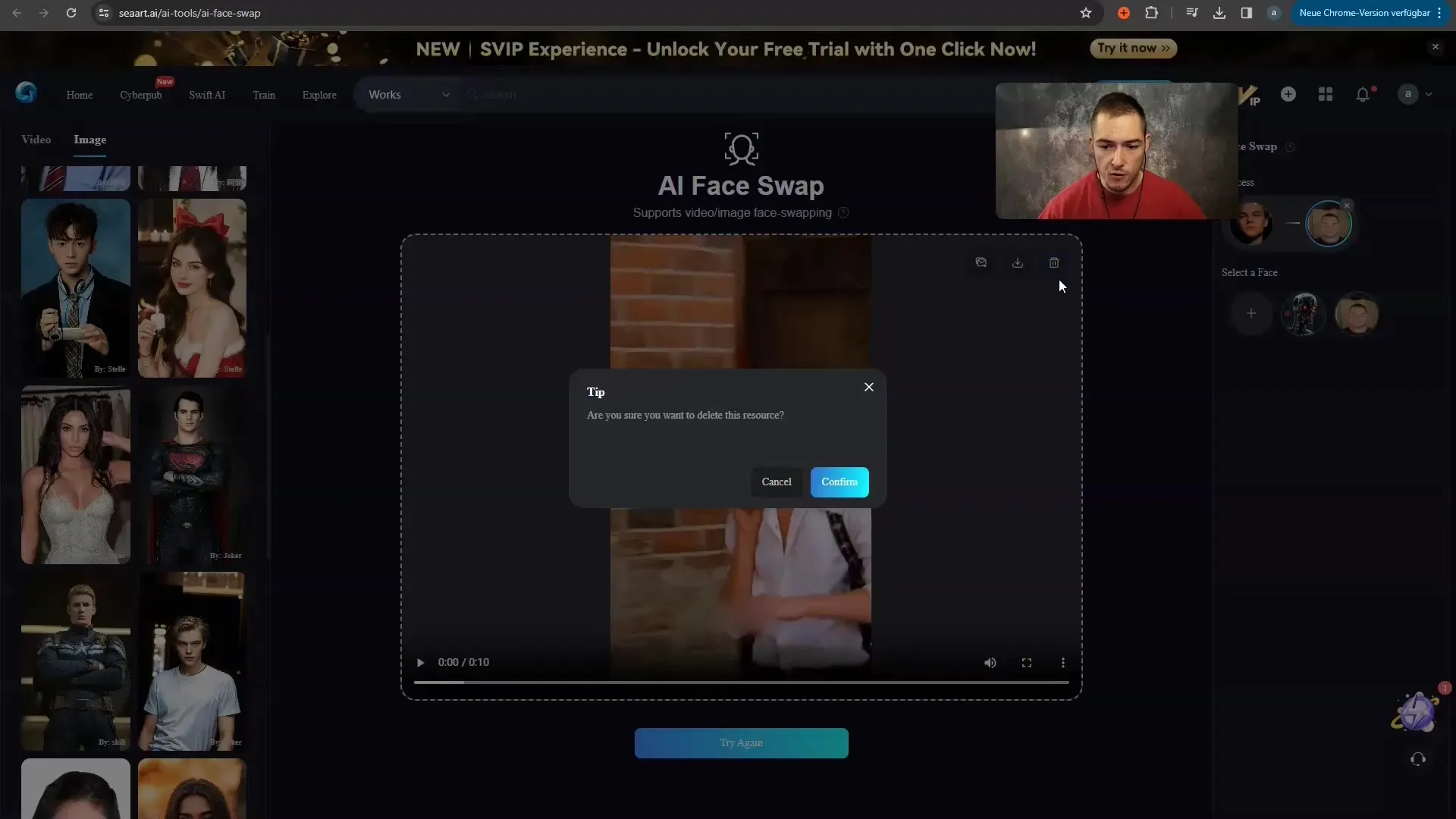 Das Erstellen von FaceSwap-Videos und -Bildern war noch nie so einfach wie jetzt. In nur wenigen Minuten kannst du deine Lieblingscharaktere übernehmen. Mit der Funktionalität der Seaart-Plattform hast du alle Werkzeuge, um kreative und unterhaltsame Inhalte zu generieren.