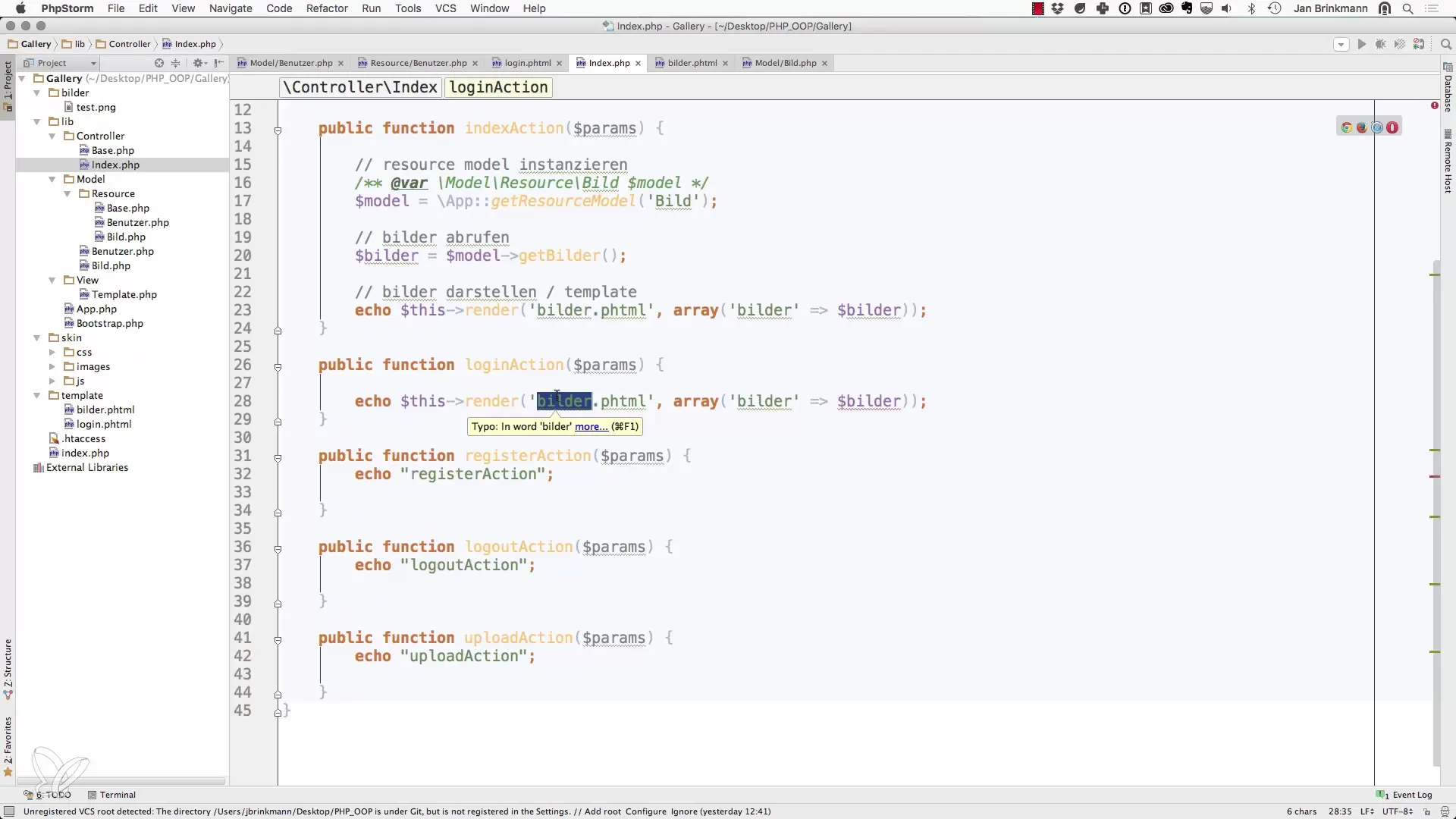Öffne nun den Index Controller und passe die Login-Aktion an, um die login.phtml-Datei zu laden. Anstatt einfach nur den Text „Login“ auszugeben, rufst du die Render-Funktion auf, um das Login-Formular anzuzeigen.