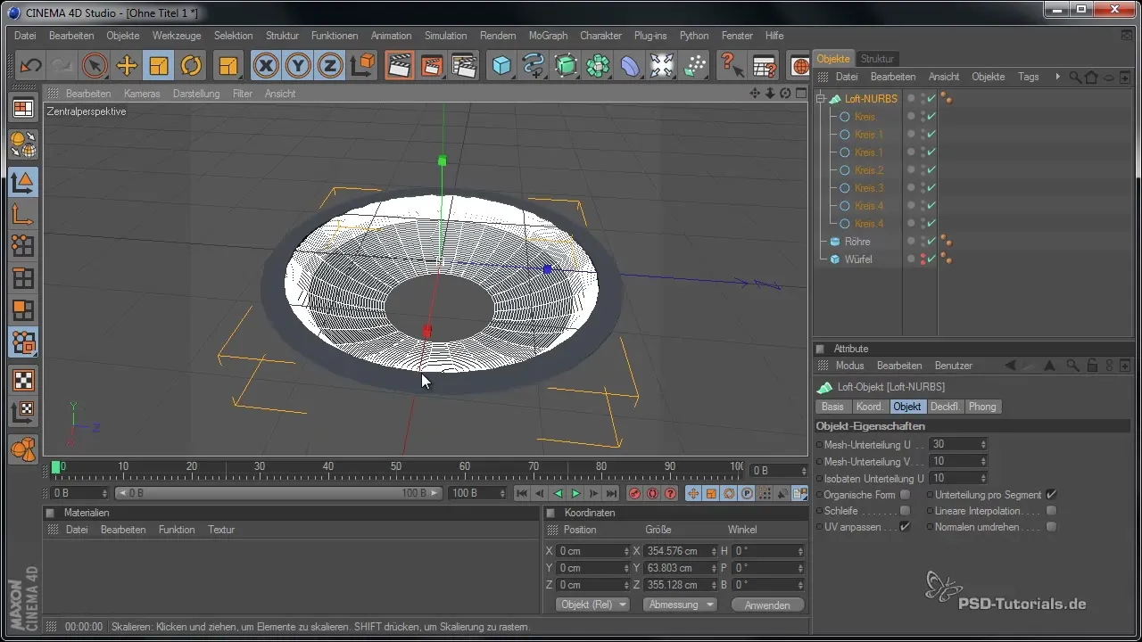 Öffne die Einstellungen des Loft-Nurbs und aktiviere die Option „Unterteilung pro Segment“. Damit wird eine globale Unterteilung statt einer individuellen pro Segment erstellt. Achte darauf, hier eine moderate Anzahl von Unterteilungen einzutragen. Eine Vorschau hilft dir, die Verteilung zu überprüfen. Durch richtige Anpassungen kannst du sicherstellen, dass die Polygonstruktur in ihrer vertikalen und horizontalen Ausrichtung ausgewogen bleibt.