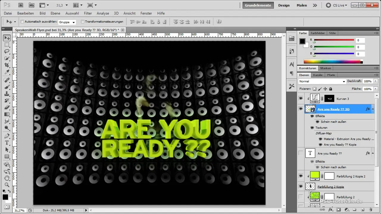 Bevor du mit dem Hinzufügen von Lichtquellen beginnst, sorge dafür, dass dein Design gut strukturiert ist. Lege alle Elemente ordentlich ab und überprüfe deinen Text sowie die Farbgebung.