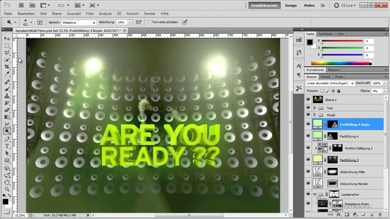 In dieser Anleitung fokussierst du dich auf das Einfügen von Lichtquellen in dein zweidimensionales Design. Das Licht ist ein wesentlicher Bestandteil deines Flyers, der den visuellen Reiz und die Aufmerksamkeit der Betrachter erhöht. Es ist Zeit, deiner Kreativität freien Lauf zu lassen und deinem Flyer mit effektvollen Lichtquellen einen besonderen Kick zu verleihen. Hier erfährst du Schritt für Schritt, wie du grelle Spotlichter und deren Umgebungen erfolgreich einbaust.