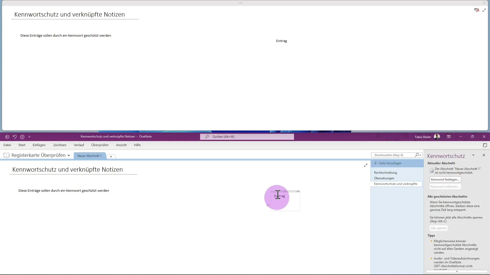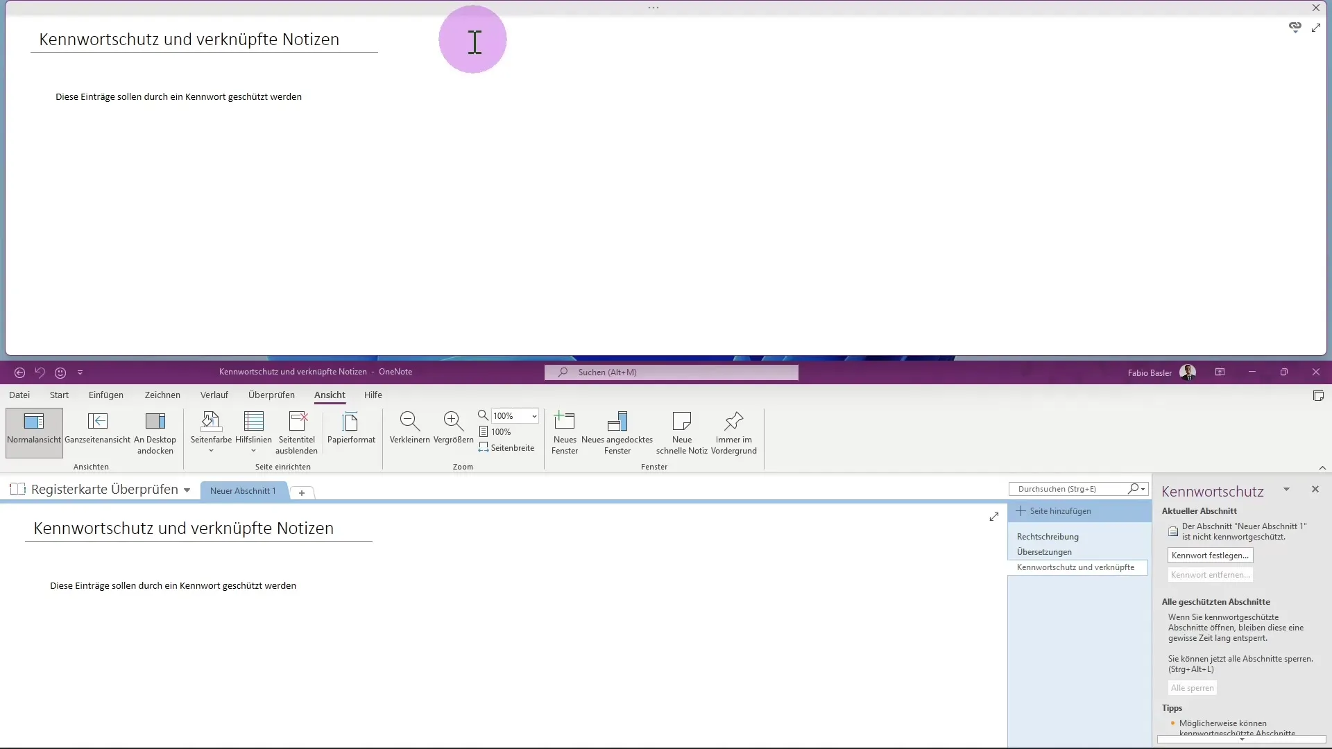 Zusammenfassung – Kennwortschutz und verknüpfte Notizen in OneNote
