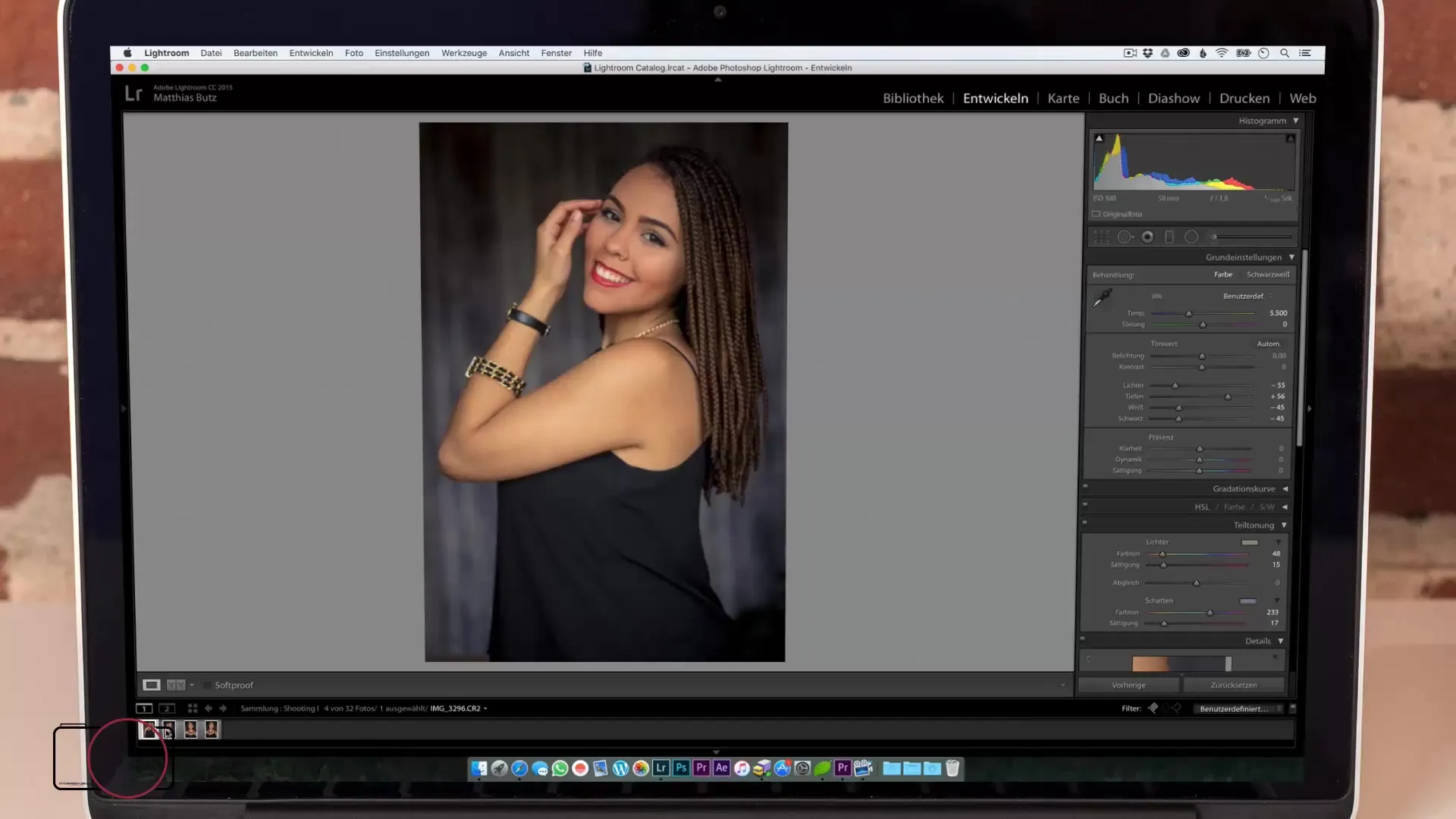 Importiere die Bilder in deine bevorzugte Software. Beginne mit grundlegenden Anpassungen wie dem Weißabgleich. Achte darauf, dass die Farbtemperatur angenehm ist und die Hauttöne gut zur Geltung kommen. Der ideale Weißabgleich kann ggf. auch angepasst werden, da du in RAW fotografiert hast.