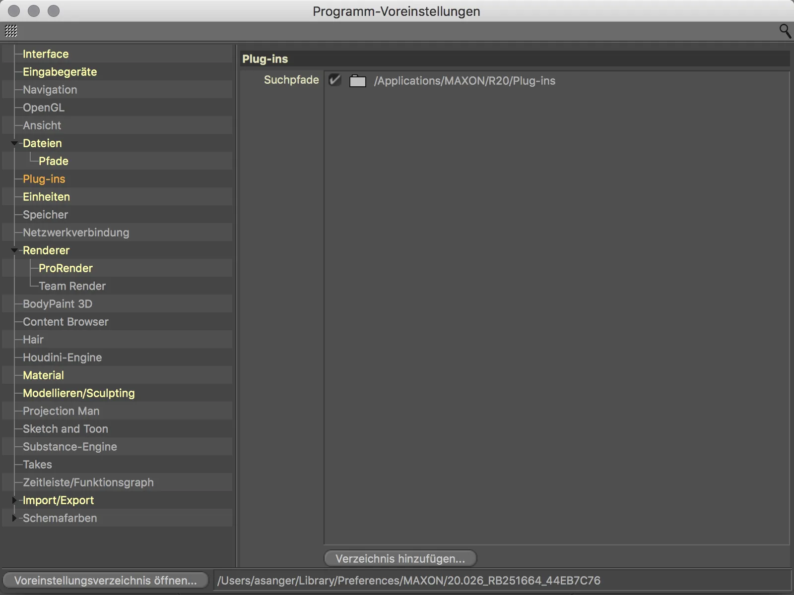 In Cinema 4D Release 20 wurde auch der Umgang mit Pfaden besser strukturiert. In den Programm-Voreinstellungen finden wir unter Dateien>Pfade getrennte Pfadlisten für Dateipfade (Suchverzeichnisse für Texturen und Assets) sowie Pfadlisten für Datenbanken (Assets für den Node-Editor), die wir frei definieren können.