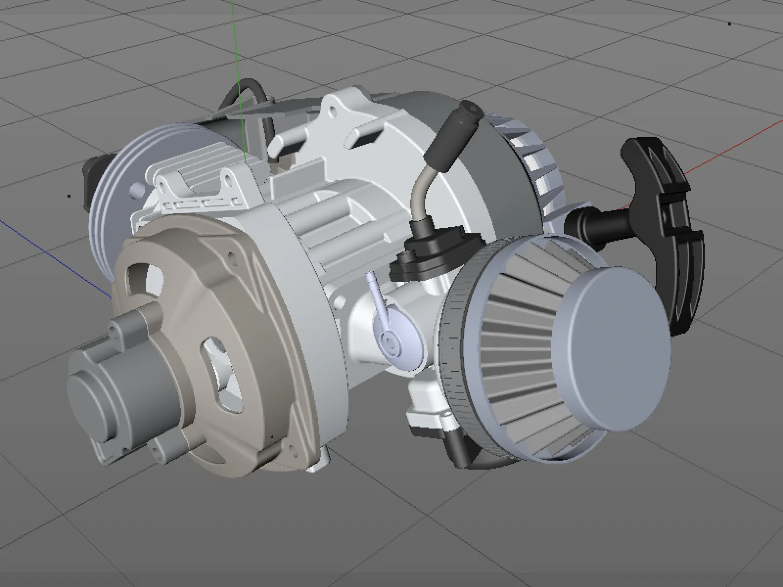 Und dieser erste Versuch sieht auch gar nicht schlecht aus. Der importierte 2-Takt-Motor ist zwar falsch ausgerichtet, doch dies lässt sich ja schnell beheben.