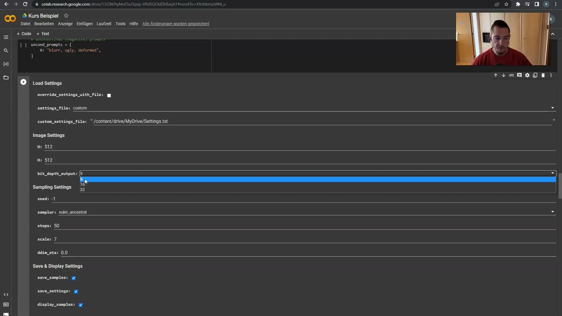 Nun kommen wir zur "Bit Depth". Diese Einstellung kannst du zwischen 8 und 32 wählen. Höhere Werte geben dir eine größere Präzision und eine Vielzahl von Farben.