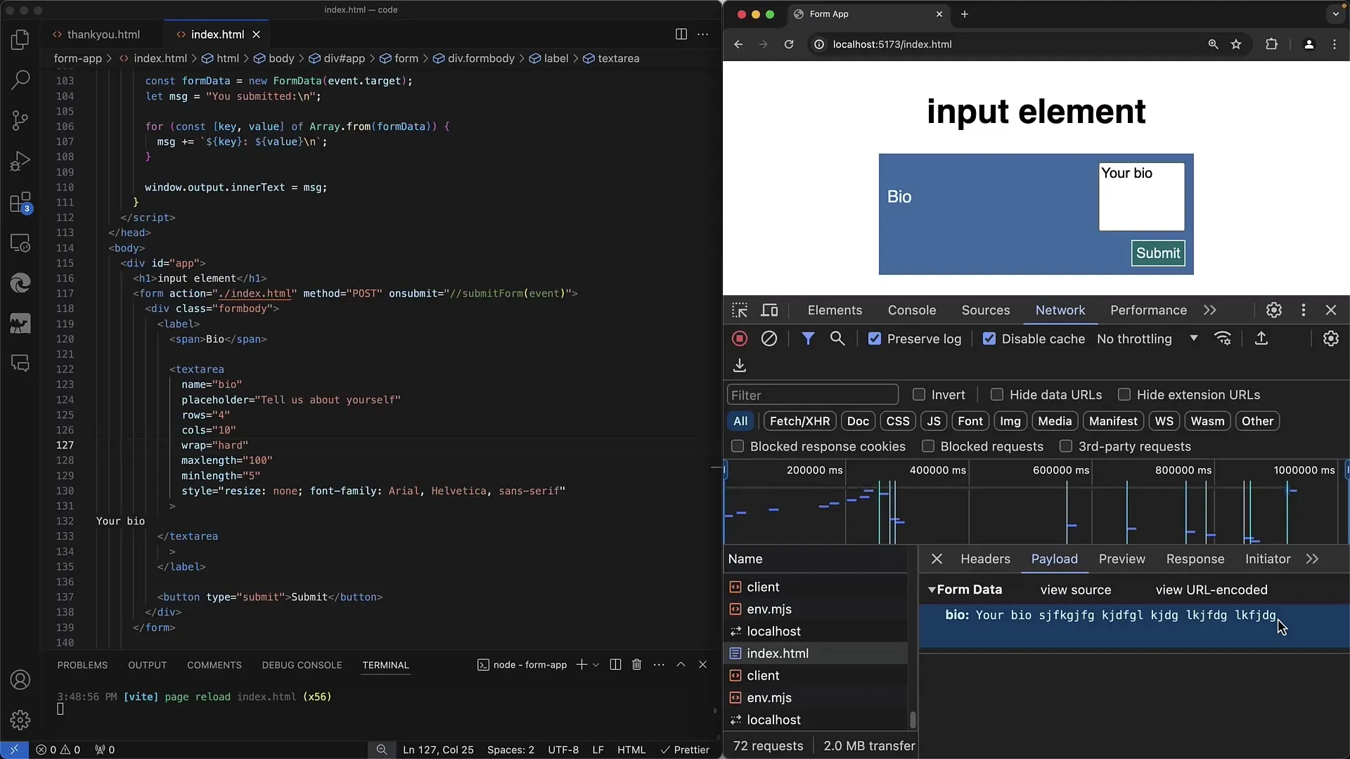 - Zeilenumbrüche und Leerzeichen werden innerhalb des textarea-Elements berücksichtigt und sind wichtig für die Darstellung des eingegebenen Textes.