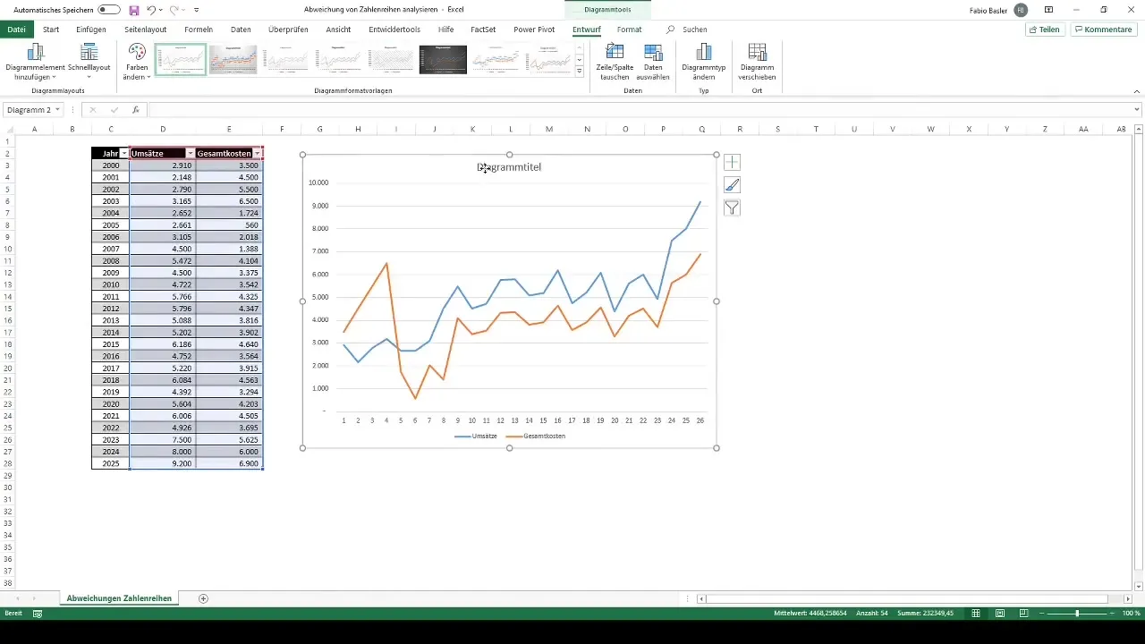 Nachdem du das Liniendiagramm erstellt hast, solltest du einige Einstellungen vornehmen. Du kannst beispielsweise den Diagrammtitel anpassen, um den Fokus auf deine Abweichungsanalyse zu lenken. Dies kannst du durch einen einfachen Klick auf den Titel im Diagramm-Bereich tun.