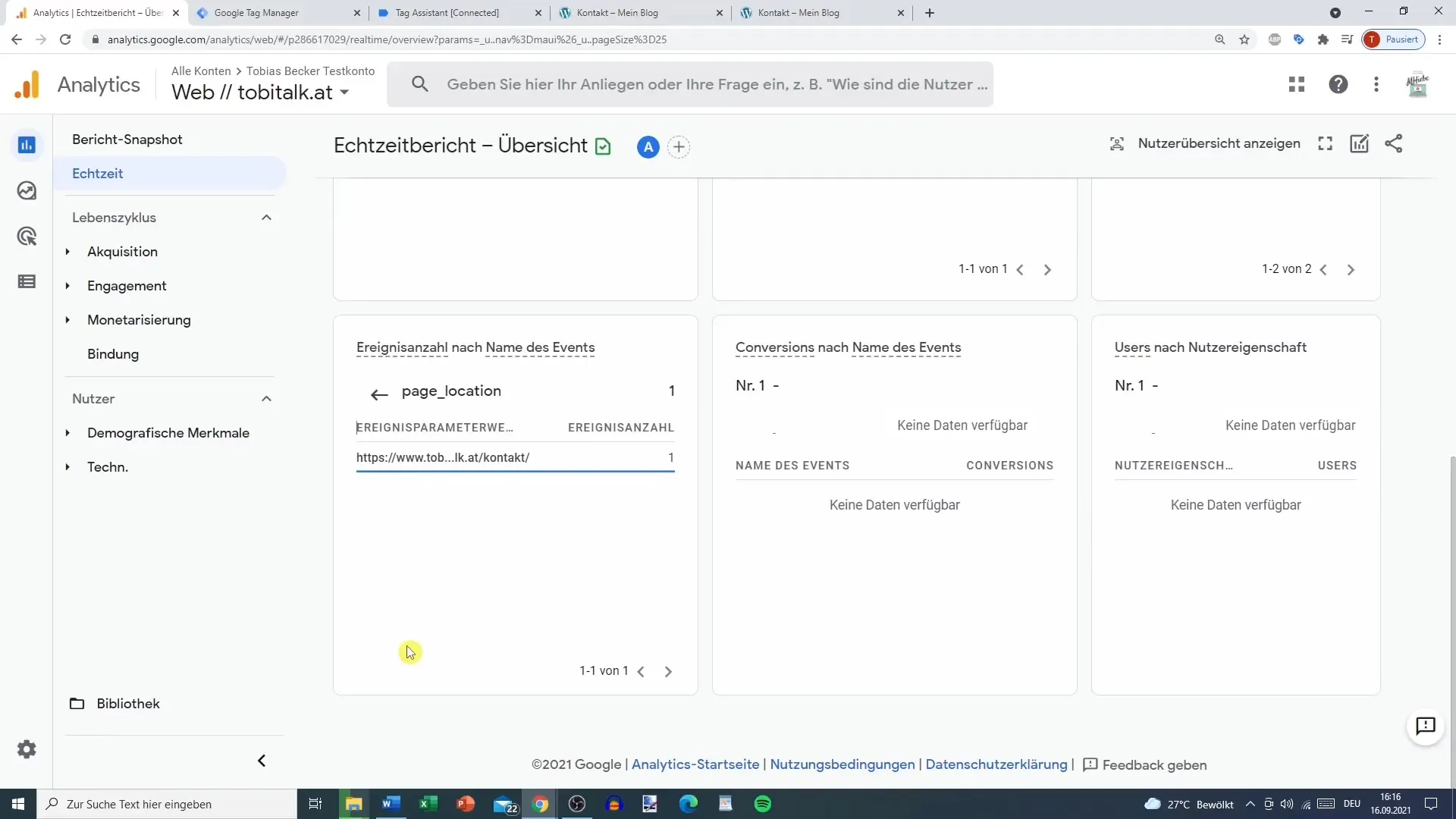 Nachdem du die Telefonnummer auf deiner Kontaktseite angeklickt hast, solltest du in der Anzeige sehen, dass das Ereignis erfolgreich aufgezeichnet wurde. Du kannst die Details der Telefonnummer sowie die Page Location überprüfen.