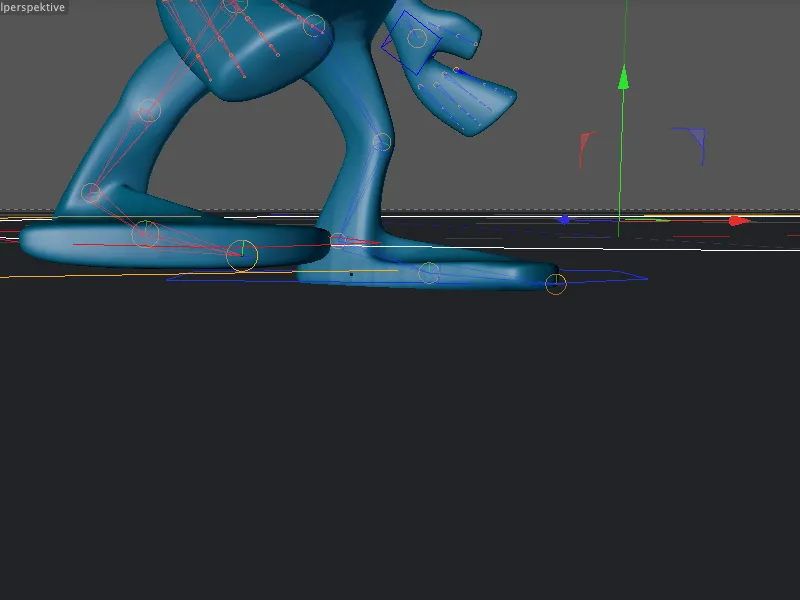 Ein Blick in die Editor-Ansicht zeigt gleich die Auswirkung unserer Änderung. Der Fuß wird nun deutlich stärker nach oben gezogen, sodass die Schritte viel markanter ausfallen.