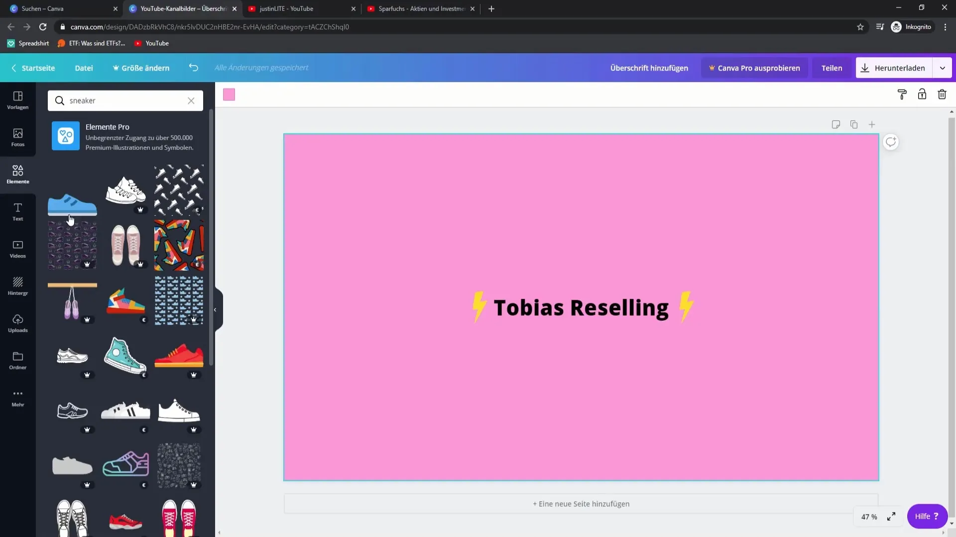 Wähle eine Hintergrundfarbe aus, die zu deinem Kanalinhalt passt. Ein sehr helles oder sehr dunkles Design kann ebenfalls ansprechend sein, solange es eine klare Lesbarkeit gewährleistet. Experimentiere mit verschiedenen Elementen wie Icons oder Symbolen, die deine Nische symbolisieren. Zum Beispiel könntest du einen Blitz oder ein anderes Markensymbol verwenden, das deine Themen unterstützt.