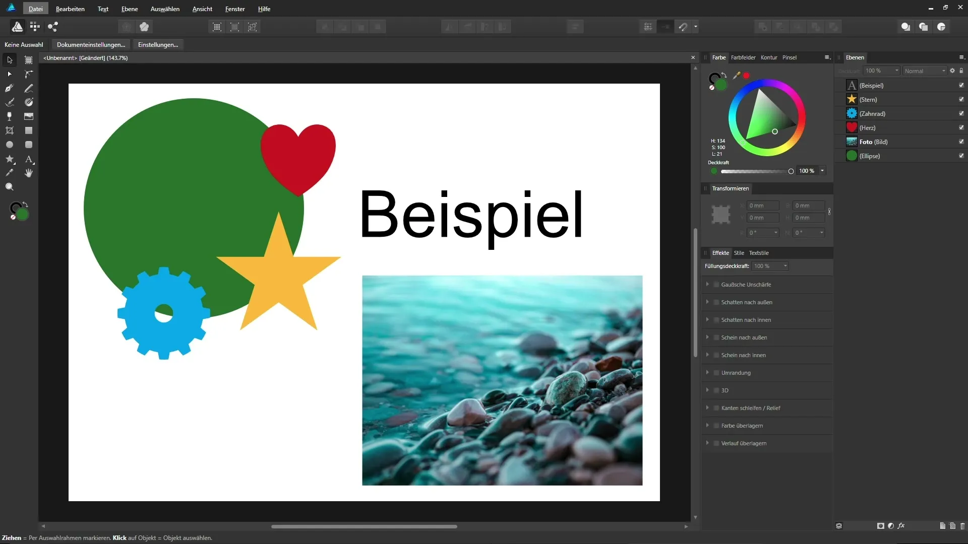 Affinity Designer bietet jedoch auch einige grundlegende Bearbeitungsmöglichkeiten für Pixelbilder, sodass auch Nutzer, die Affinity Photo nicht besitzen, mit gängigen Bildkorrekturen arbeiten können.