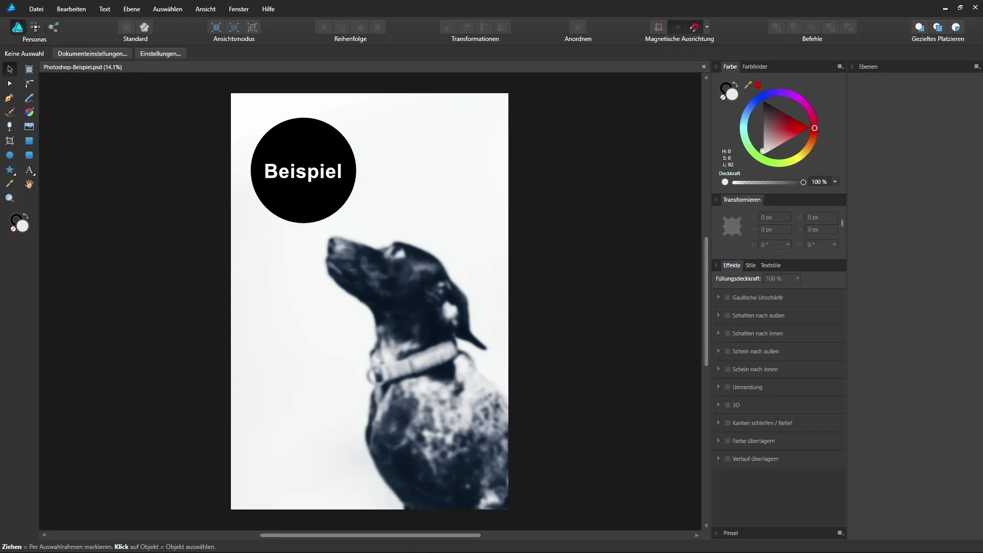 Um in Affinity Designer effektiv durch dein Dokument zu navigieren, nutze die folgenden Schritte: