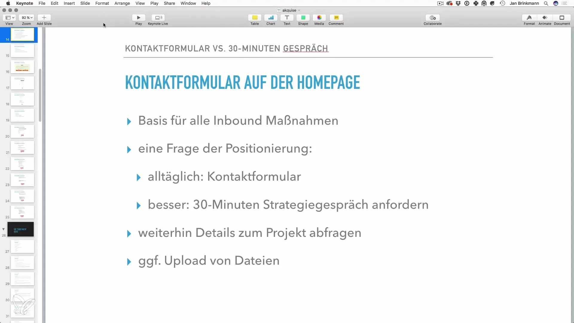 Ein gut positioniertes Kontaktformular ist ein wichtiges Werkzeug in deiner Akquise-Strategie. Durch die Umwandlung eines herkömmlichen Kontaktformulars in ein Bewerbungsgespräch für eine kostenlose Beratung kannst du das Interesse deiner Zielgruppe gewinnen. Strategische Fragen und klare Erwartungen schaffen Vertrauen und erhöhen die Wahrscheinlichkeit, dass deins Formular ausgefüllt wird.