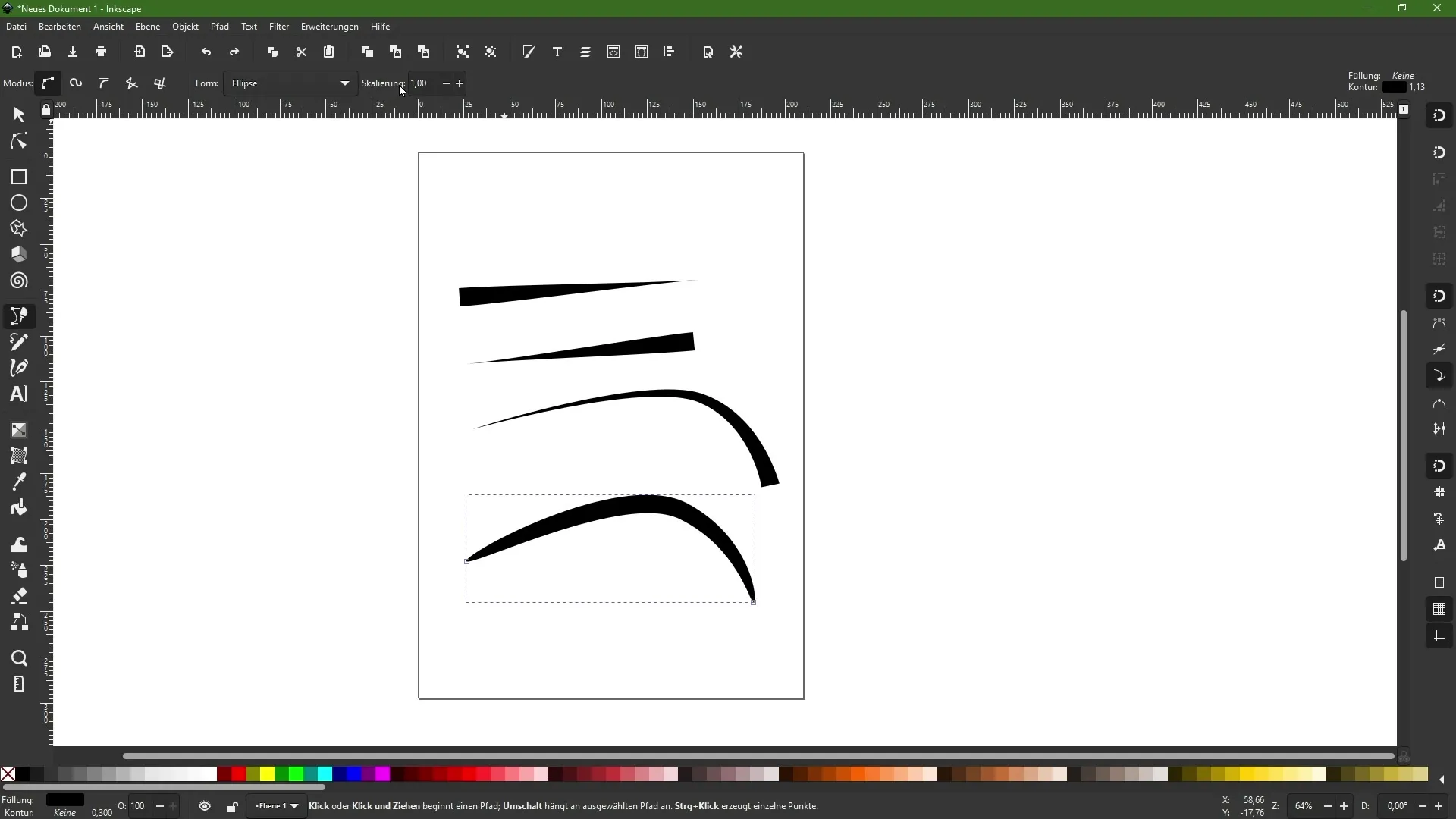 Αφού δημιουργήσετε μια διαδρομή, μπορείτε να εκχωρήσετε περιγράμματα. Στο Inkscape, μπορείτε να επιλέξετε διαφορετικά στυλ. Από προεπιλογή, έχετε λεπτά μαύρα περιγράμματα τα οποία μπορείτε να προσαρμόσετε όπως επιθυμείτε.