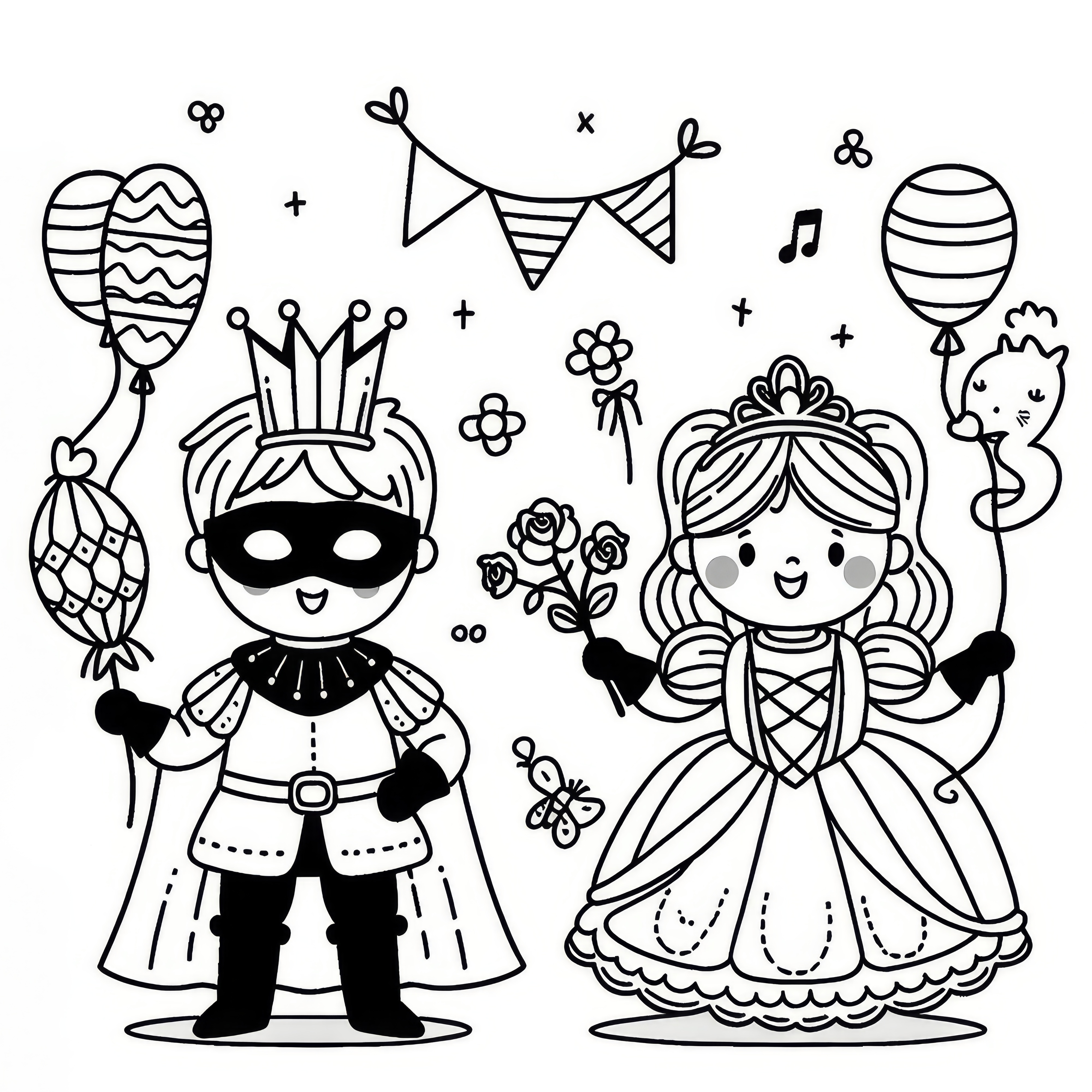 Ψάχνεις ένα δημιουργικό σχέδιο ζωγραφικής για το Καρναβάλι; Σε αυτήν την εικόνα βλέπεις παιδιάπου έχουν ντυθεί πριγκίπισσες και ιππότες. Με αυτό το μοτίβο μπορείς να εμπλουτίσεις όχι μόνο το μπλοκάκι σου, αλλά και να δημιουργήσεις δημιουργικές ώρες γεμάτες διασκέδαση και χρώμα για τα μικρά. Και το καλύτερο; Μπορείς να κατεβάσεις δωρεάντην εικόνα και να τη ζωγραφίσεις online. Κατέβασε το σχέδιο ζωγραφικής τώρα και βυθίσου στον πολύχρωμο κόσμο του Καρναβαλιού!