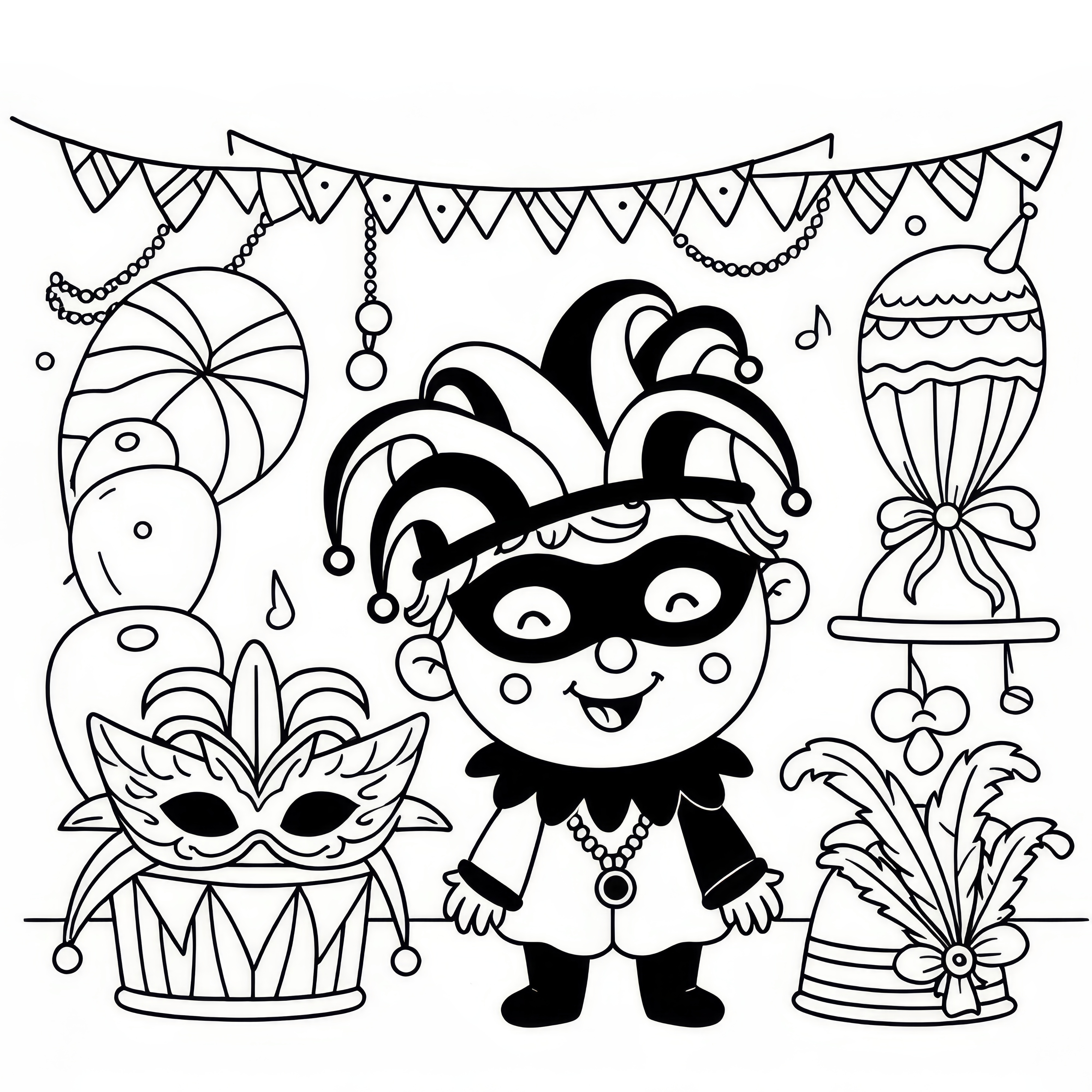 Στη φωτογραφία μας βλέπεις ένα παιδίπου έχει μεταμφιεστεί για το Καρναβάλι. Αυτό το απλό σχέδιο χρωματισμού φέρνει πολύ διασκέδαση και δημιουργικότητα στο σπίτι σου. Ανεξάρτητα αν θα χρησιμοποιήσεις το σχέδιο για ένα χαλαρό απόγευμα με τα παιδιά ή ως έμπνευση για την επόμενη καρναβαλική στολή – είναι διαθέσιμο δωρεάν για λήψη. Απλώς κάνε κλικ στο κουμπί λήψης και μπορείς να αρχίσεις. Αν δεν έχεις διάθεση να το εκτυπώσεις, μπορείς να το χρωματίσεις και απευθείας online!