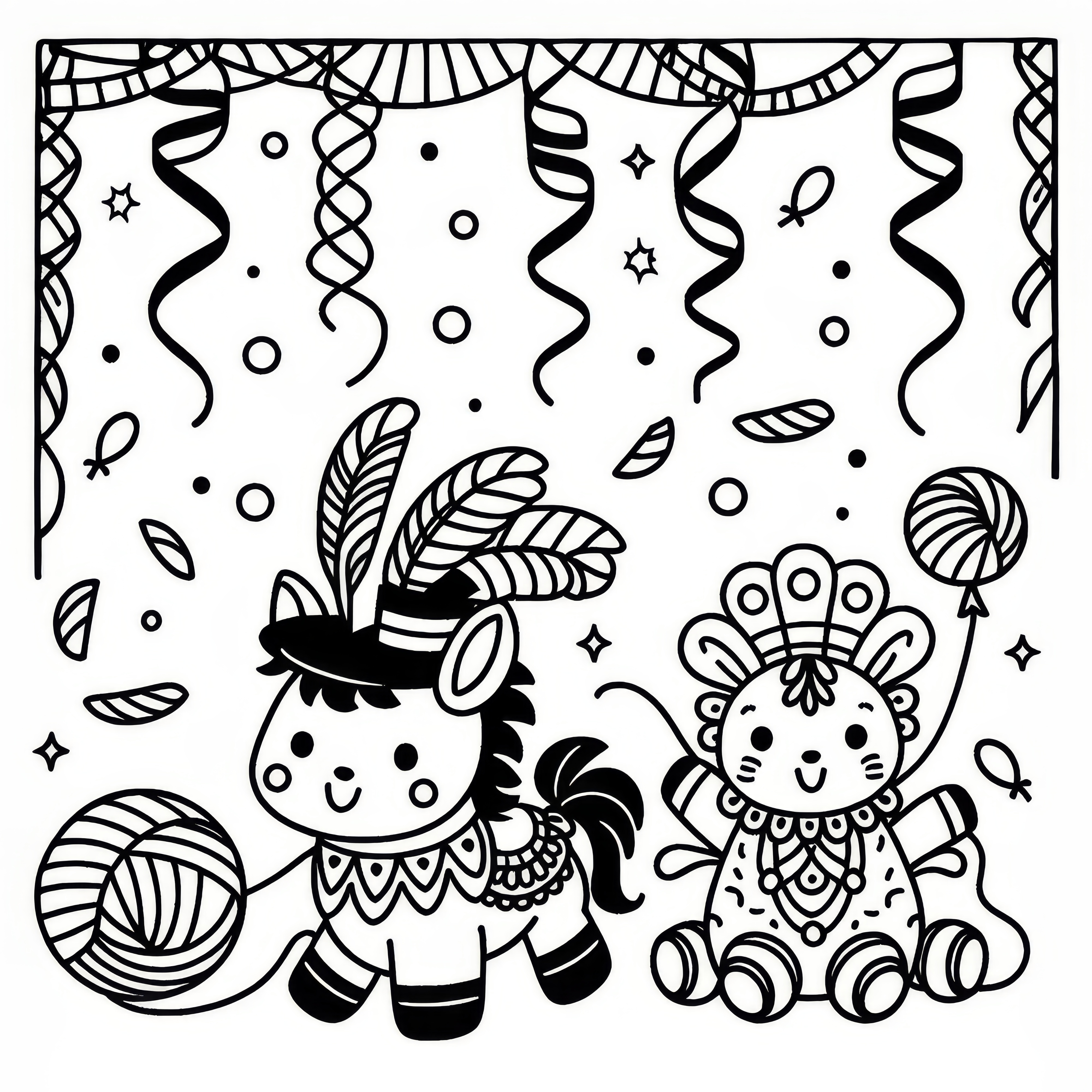 Καπελάκια καρναβαλιού με κορδέλες και διακοσμήσεις – Καρναβάλι σχέδιο προς χρώμα απλά δωρεάν