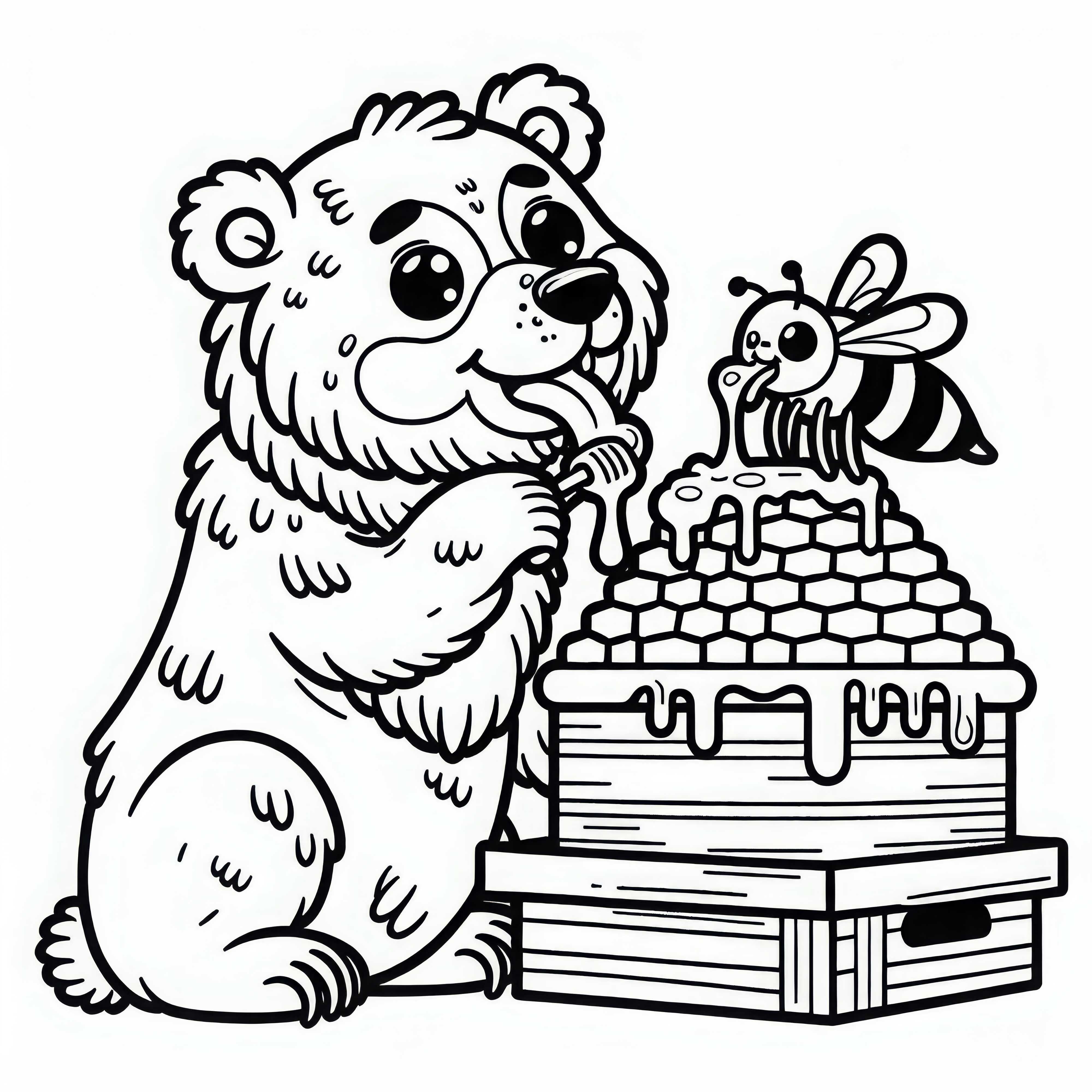 Glasses bear mother lovingly plays with her cub - Free coloring page