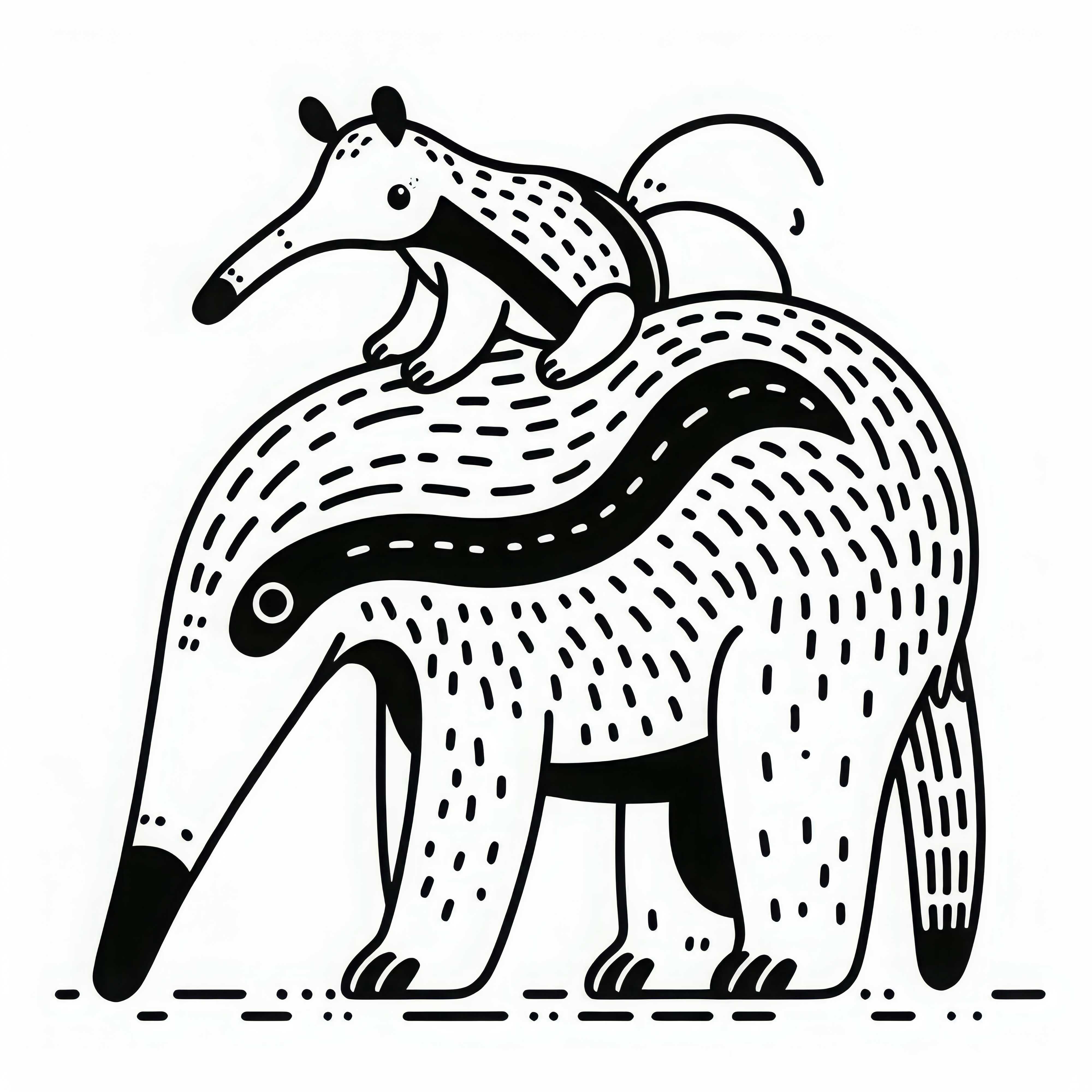 Anteater sticks long tongue into ant mound – Coloring picture simple free