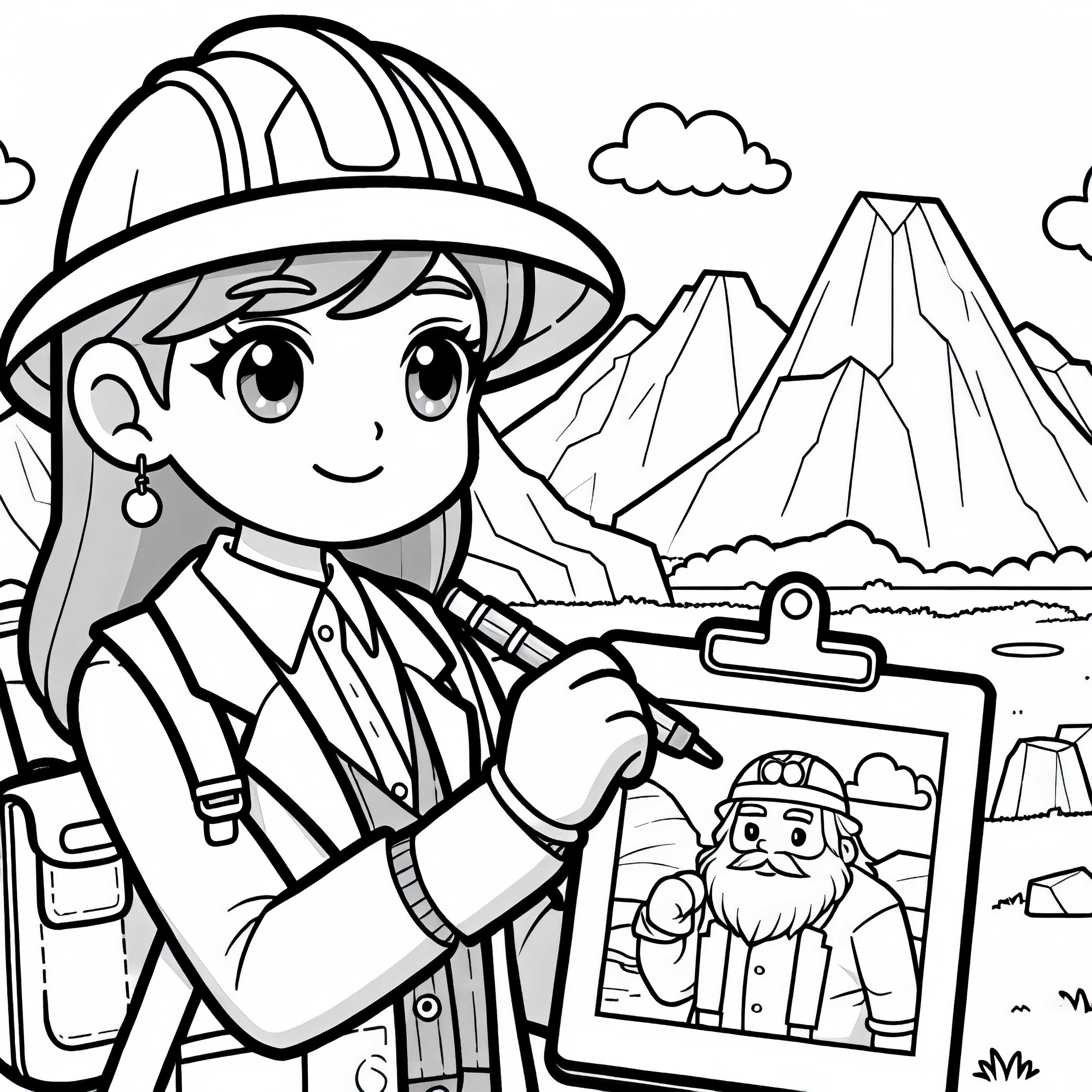 Geologist Draws Rocks in Notebook Coloring Page Free