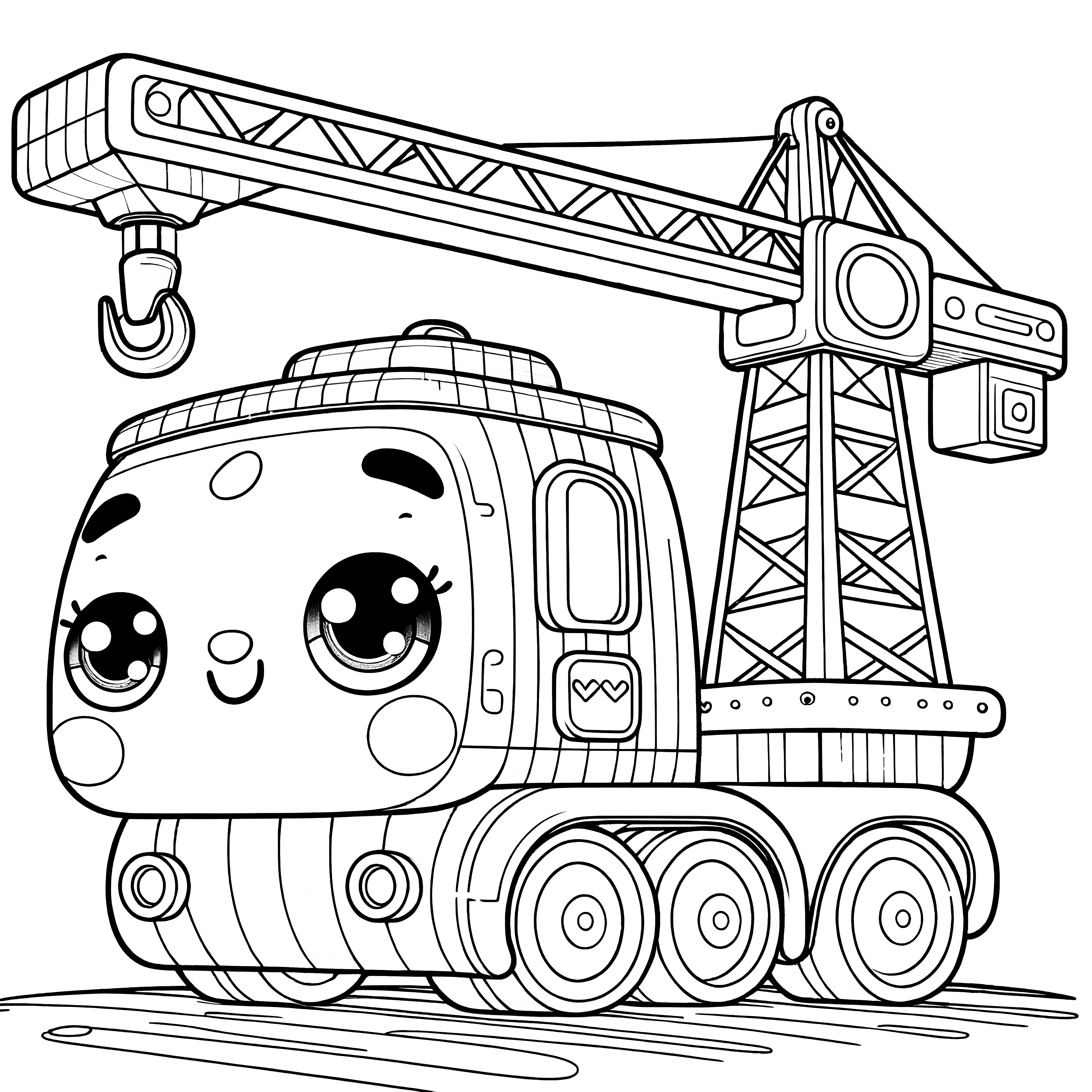 Happy toy crane in the shape of a house with a face: Coloring picture (Free)
