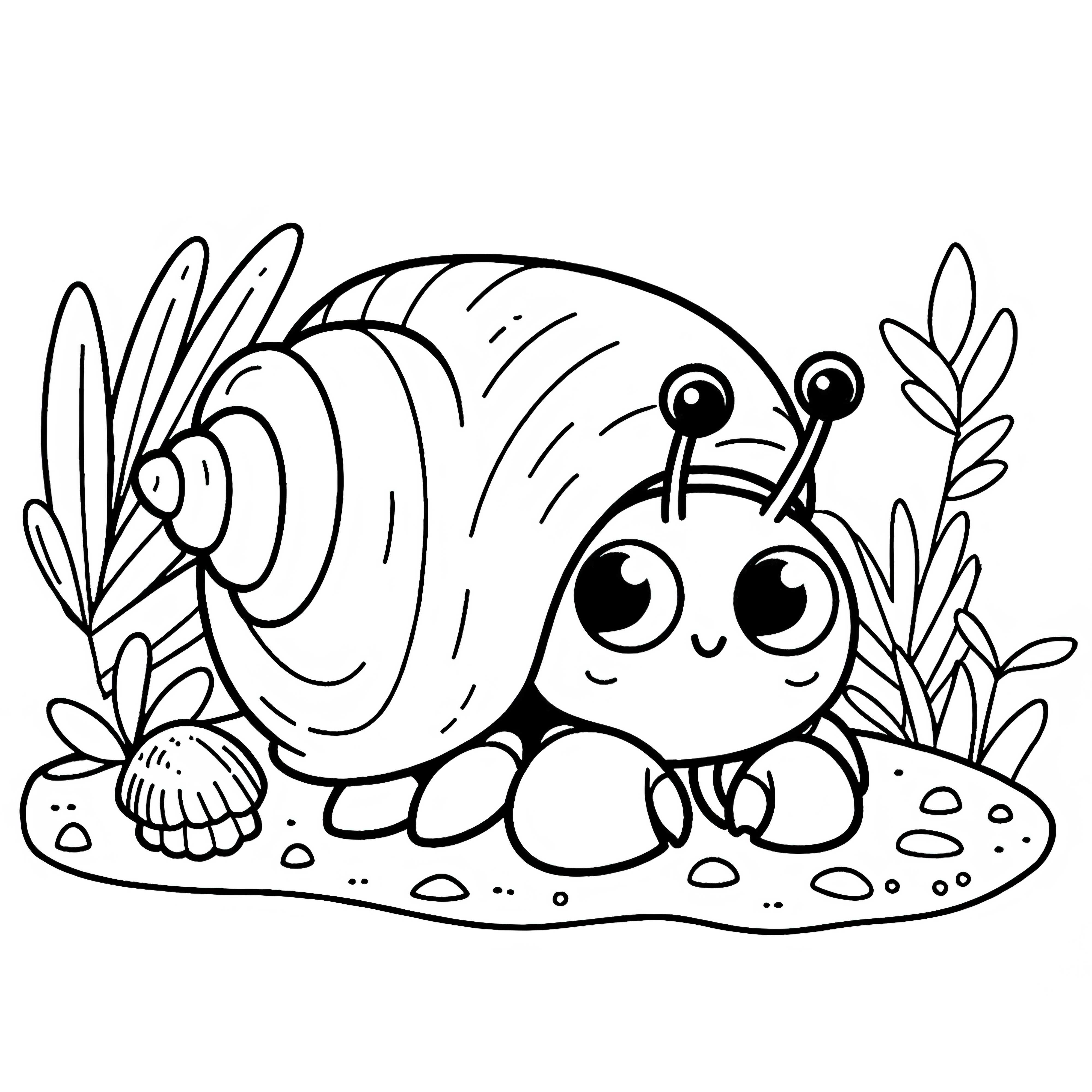 Cancer between algae and mussels underwater: Simple coloring template (Free)