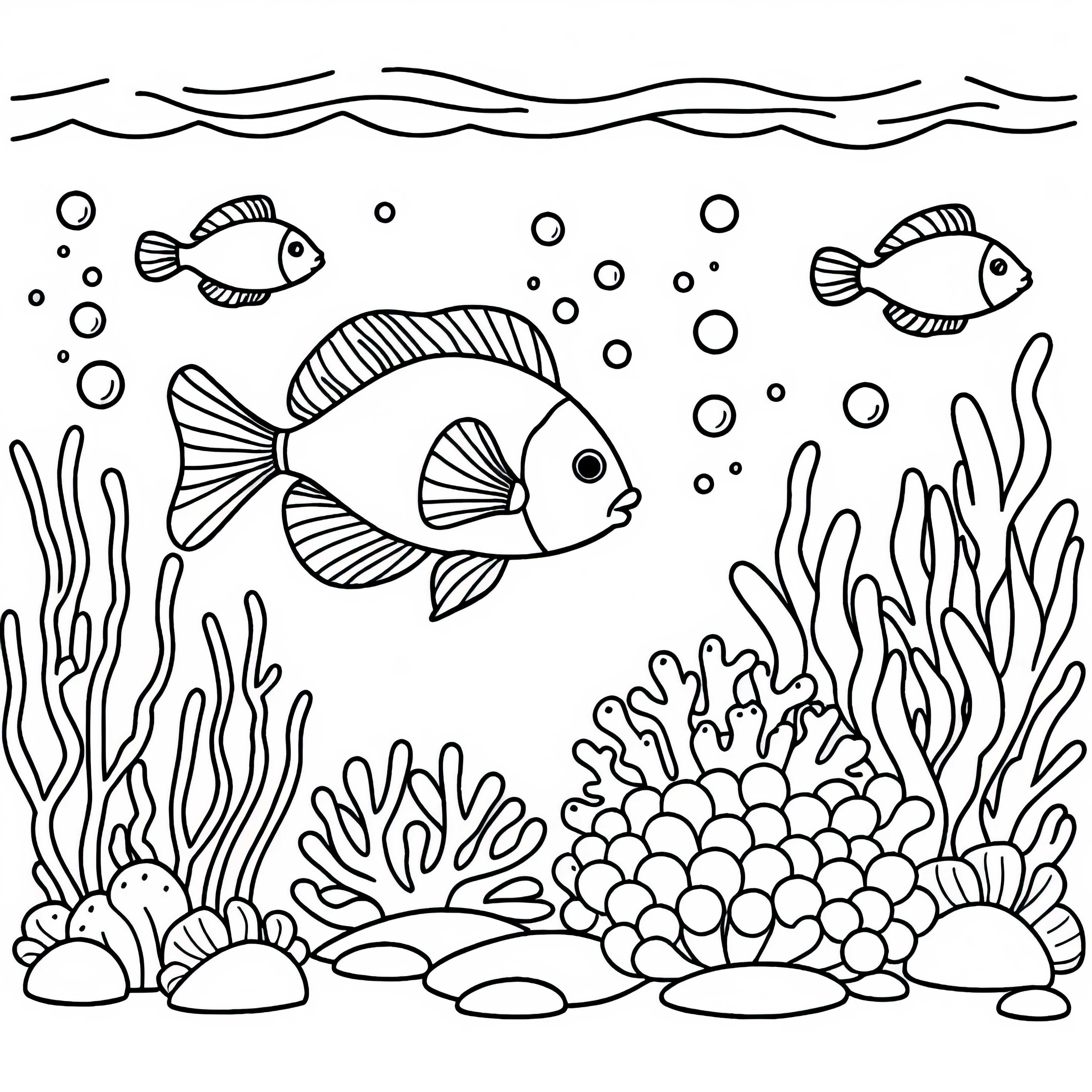 Friendly fish with big eyes: Simple coloring picture for children (Free)