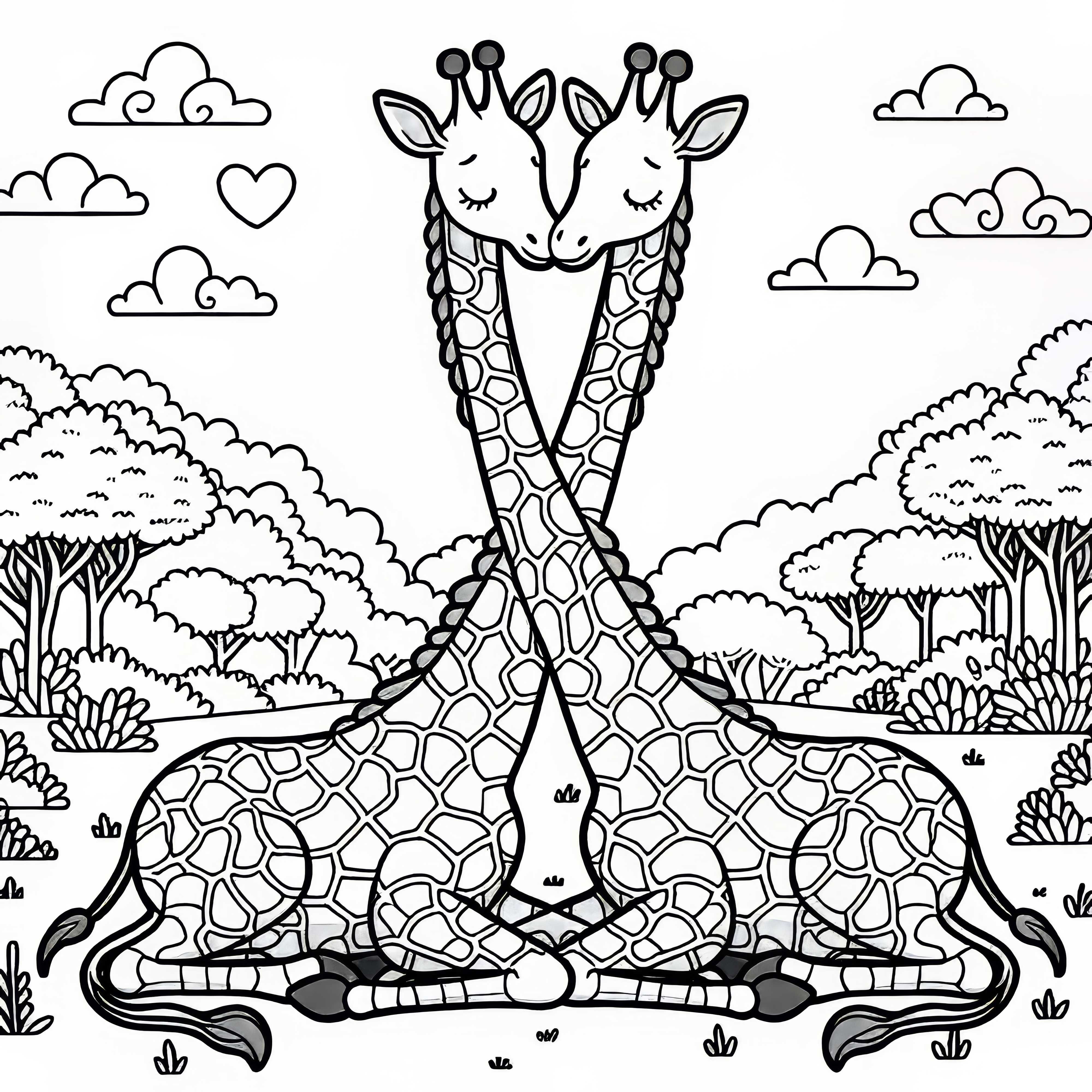 Elephant family with three calves in savanna: Coloring page for children (Free)