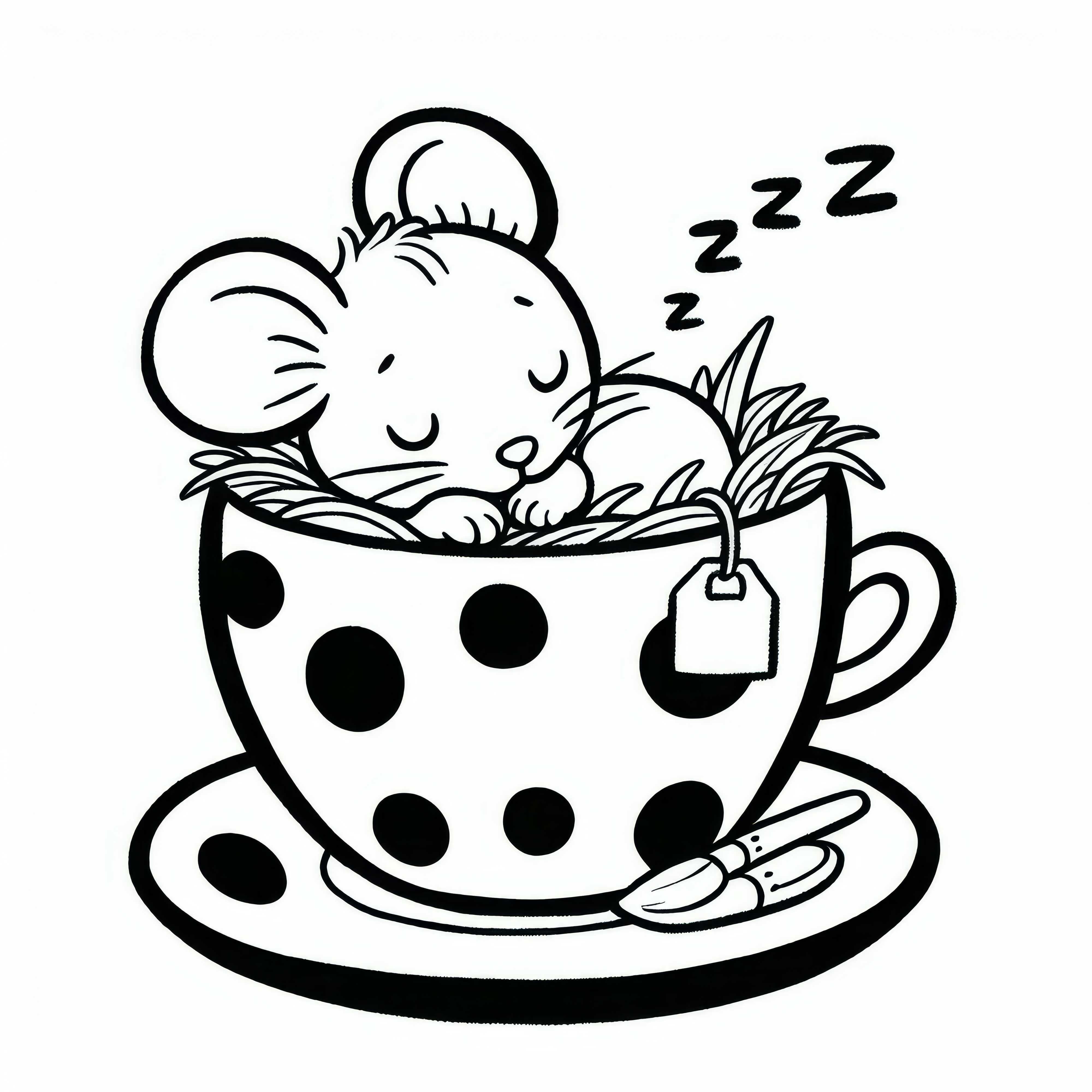 Two Mice Dancing on a Table with Crumbs – Free Coloring Page
