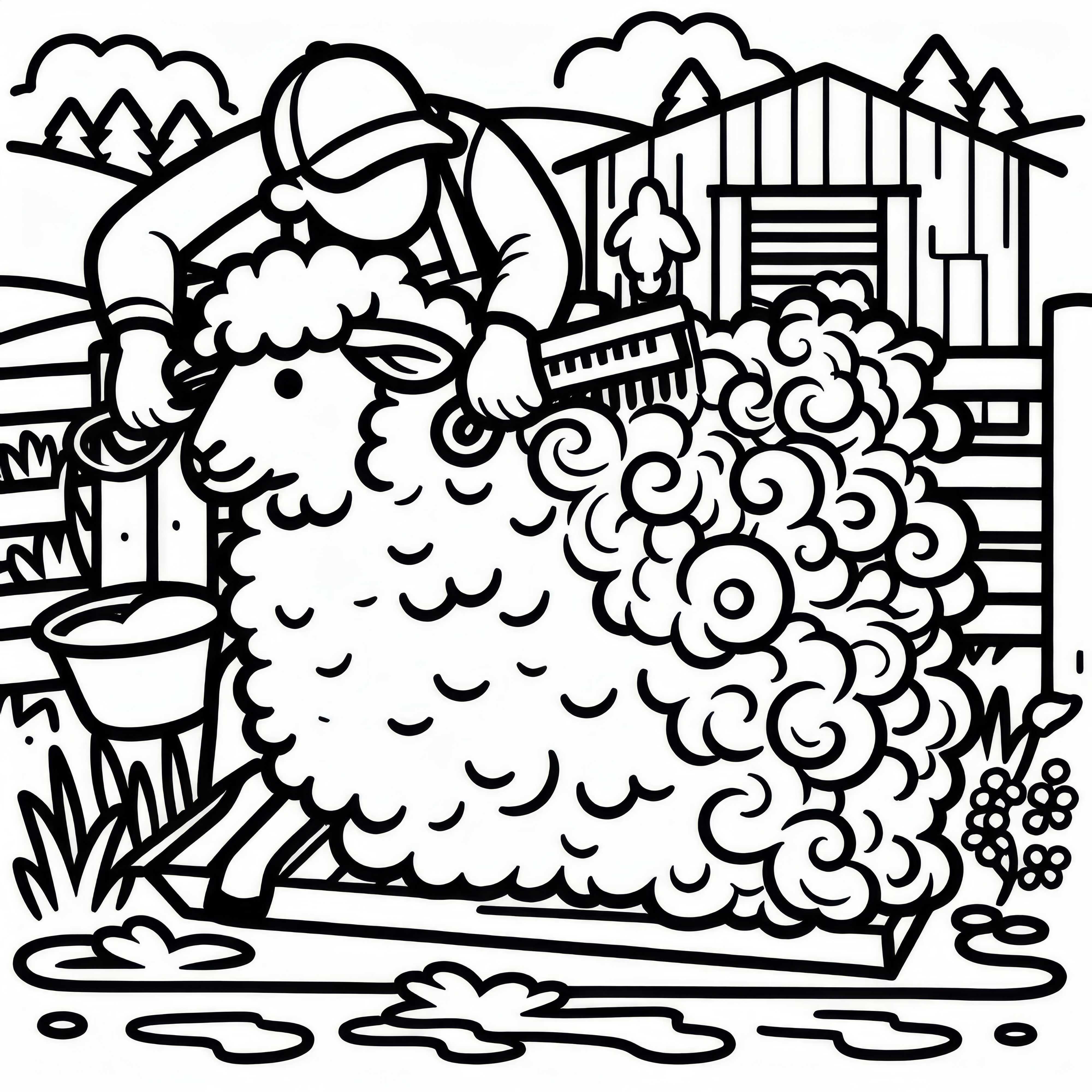Sheep lying in a meadow with flowers and butterflies - free coloring page