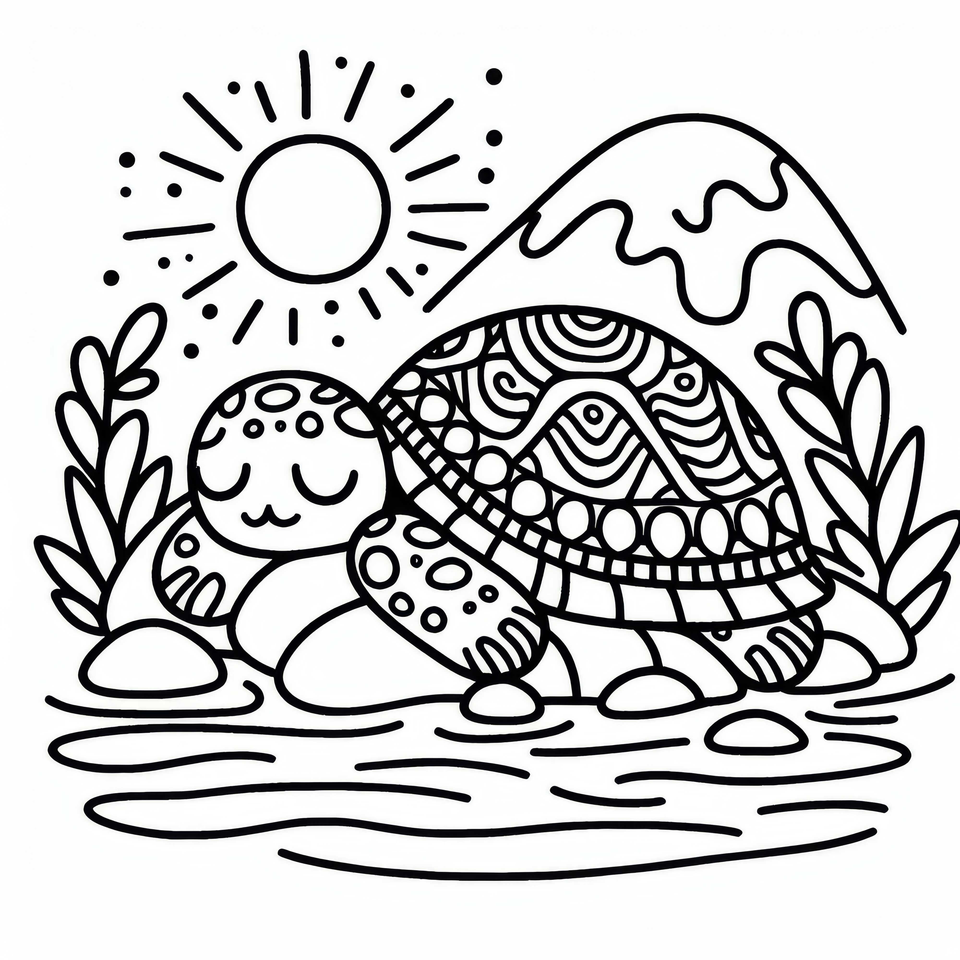An elephant is bathing in a mud hole with birds on its back - coloring page available for free download