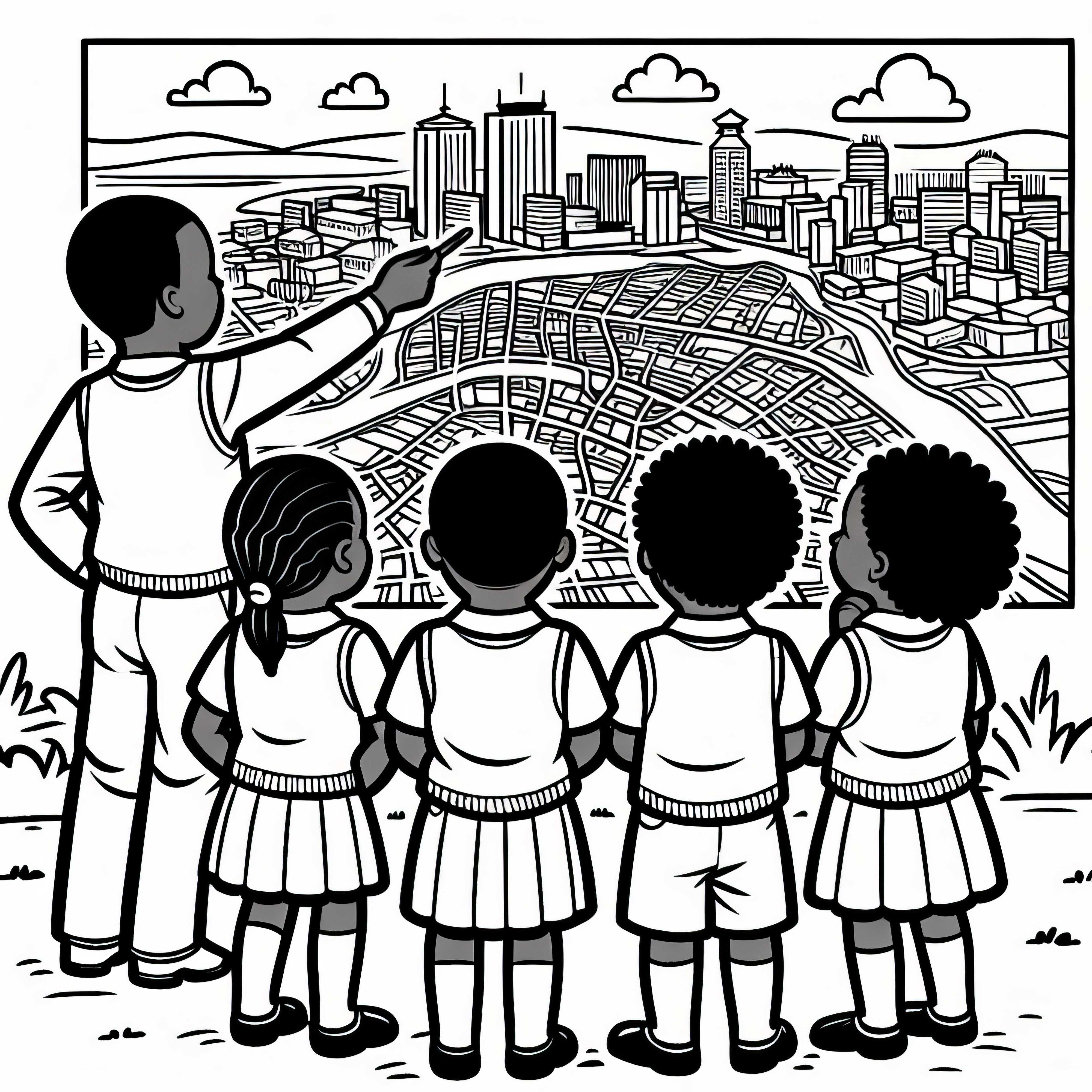 Children see colorful activities in the Zocalo in Mexico City – Free coloring page