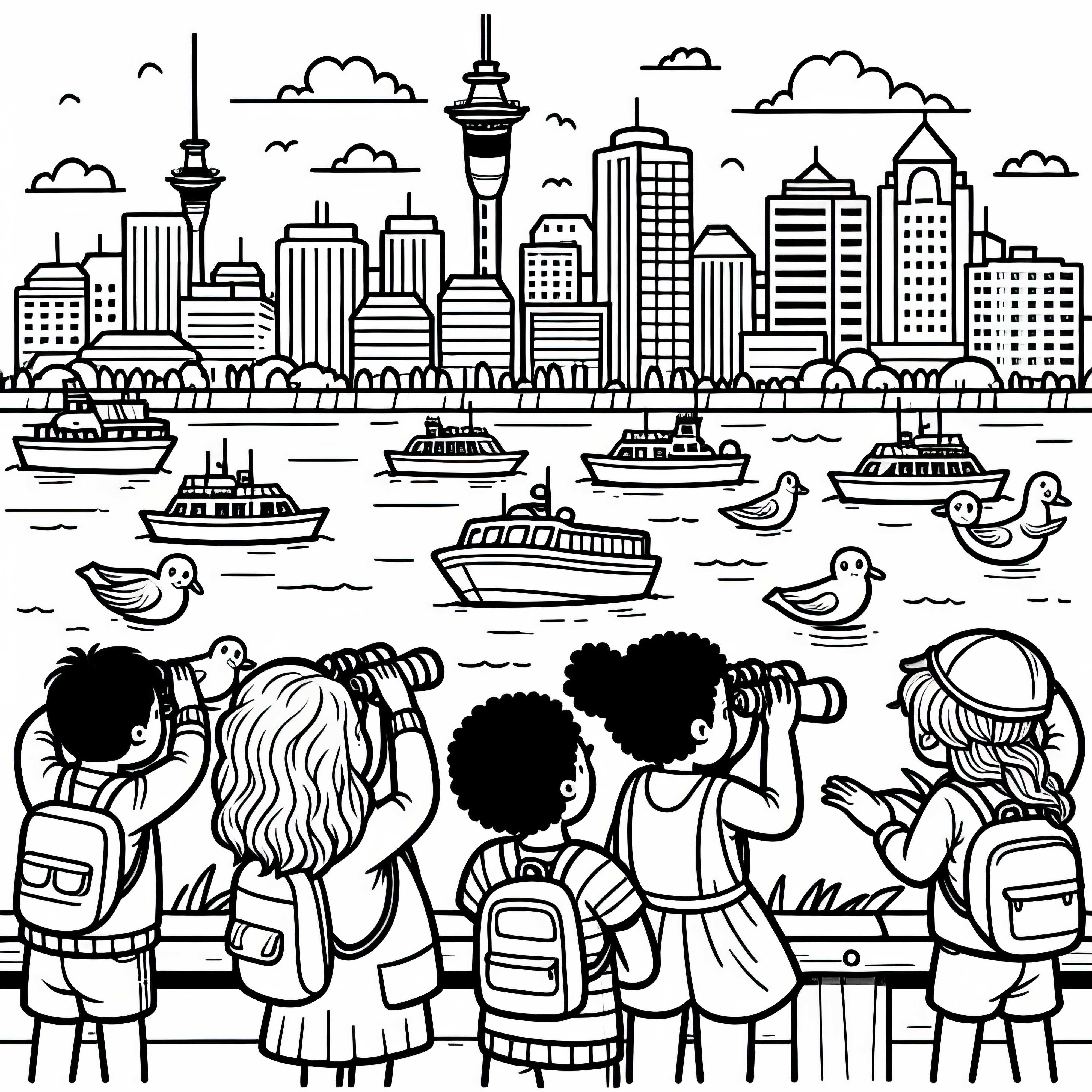 Istanbul: Children buy fruit at the bazaar with a view of minarets – Free coloring page
