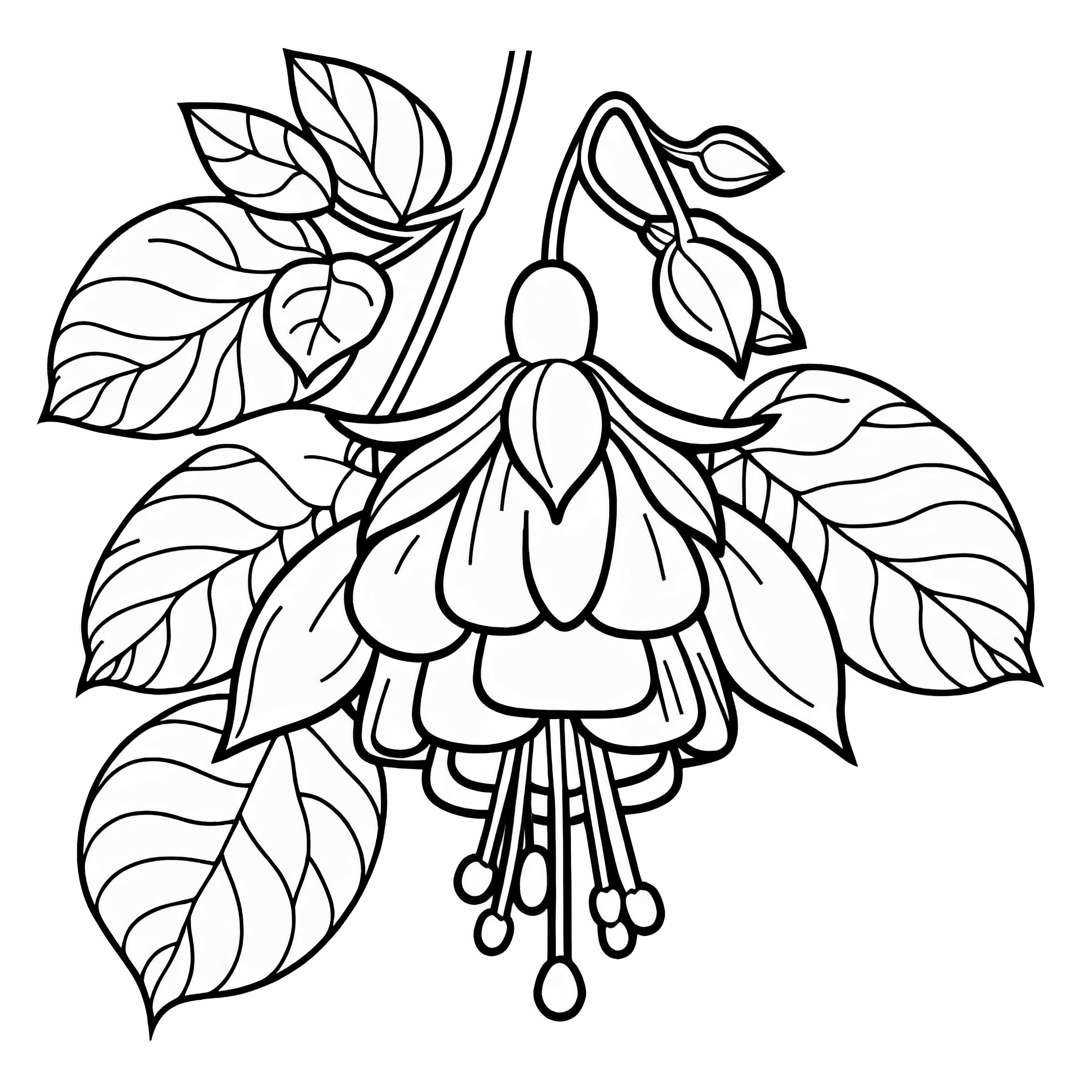 Flower Fuchsia grows in the stone pot – Free coloring page