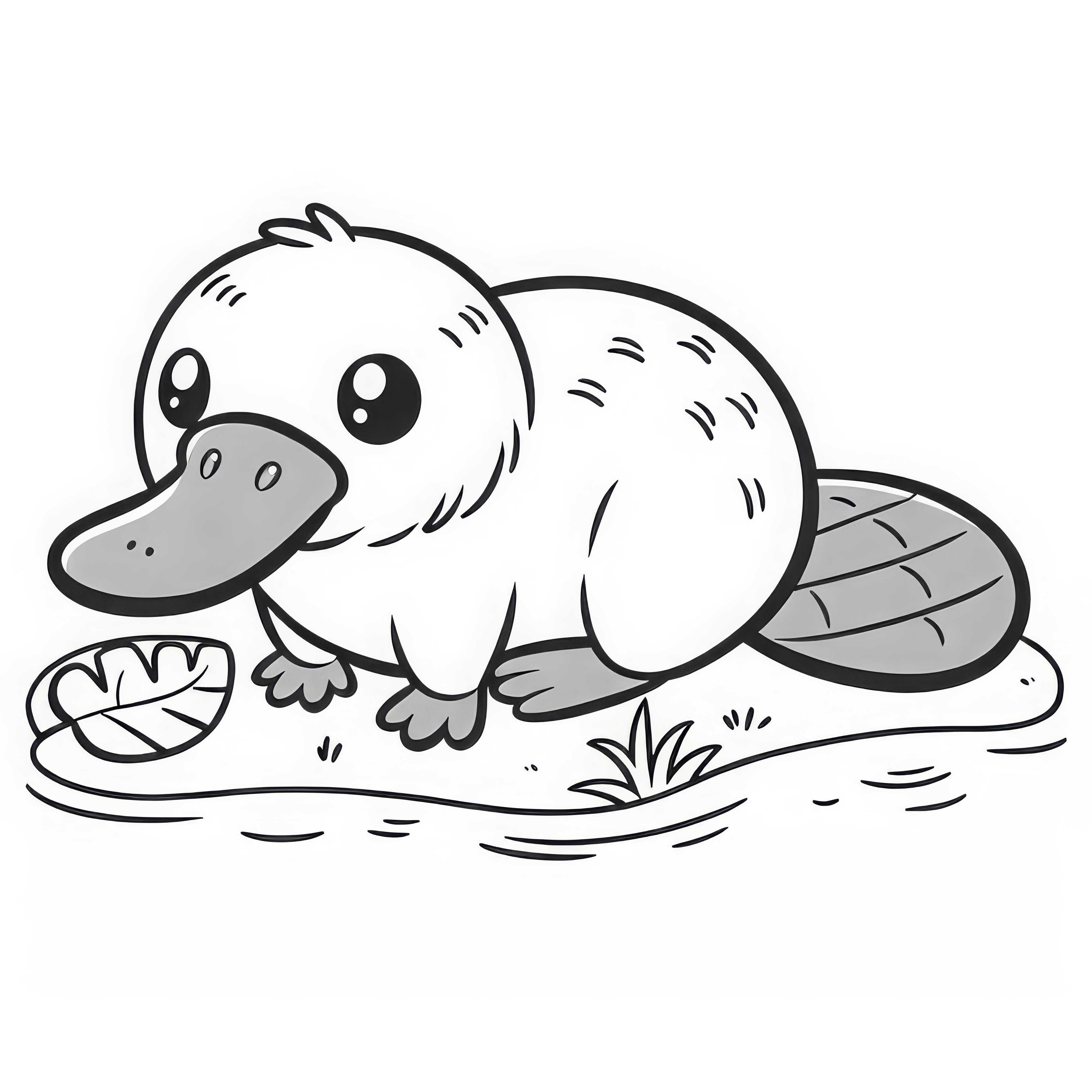 Platypus digs with its bill in the riverbed for worms - free coloring page