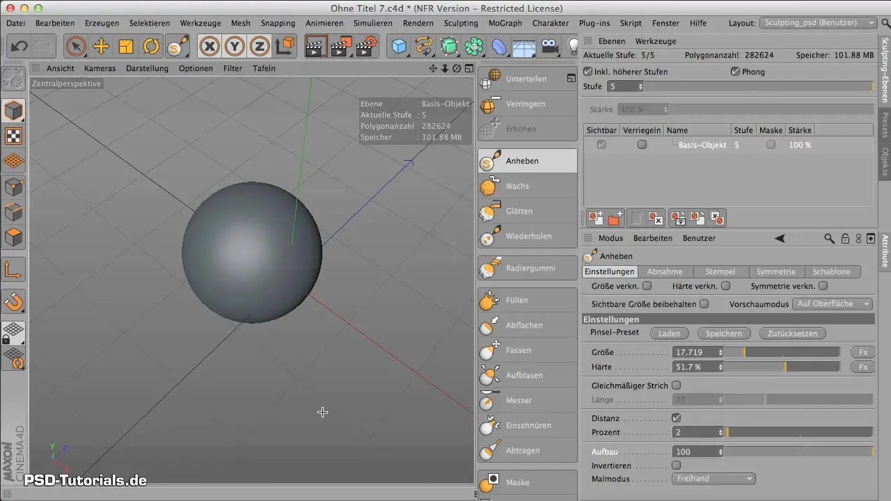 When working with the sculpting tool, it is crucial to choose the right tools. You should ensure that the tools you are using are relatively similar in size. Imagine you are working on a tree trunk: a fine chisel is not suitable for working with a large tool. This also applies to sculpting in CINEMA 4D. Therefore, it makes sense to link the properties of the tools to achieve consistent results.