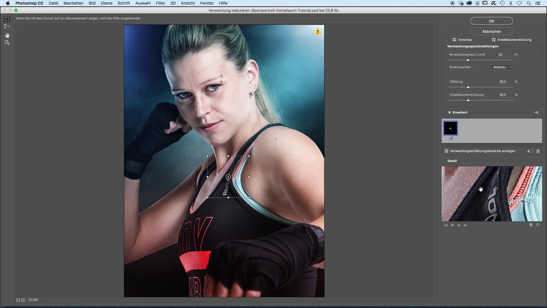 Now you have the option to customize the sharpness settings individually. At first, the sharpening may seem too strong, but you can easily adjust the values to achieve the perfect result. Experiment with the sliders for “Blur Limit,” “Smoothness,” and “Artifact Suppression” to find the best sharpness level for your image.